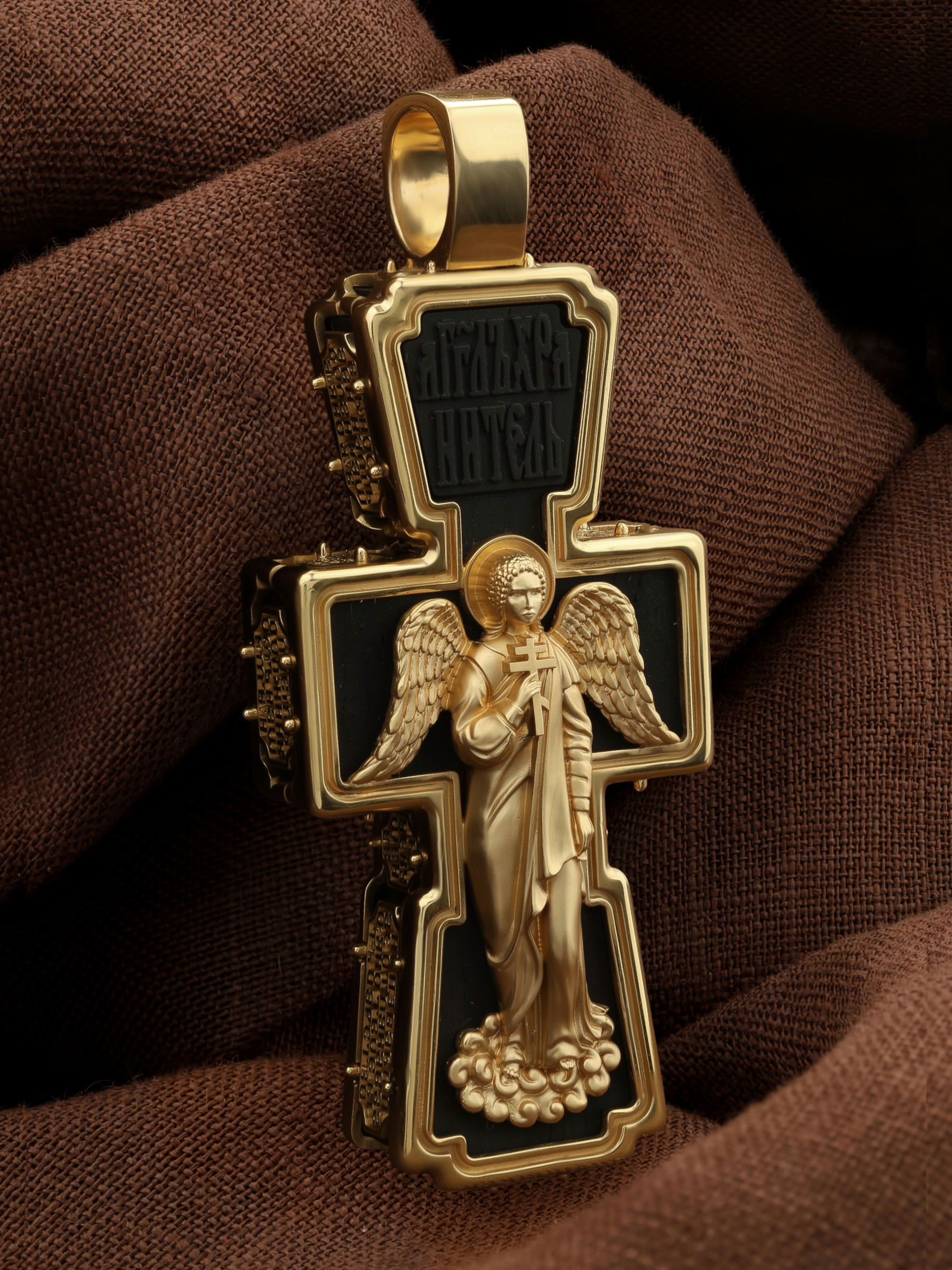 Крест из лимонного золота c эбеновым деревом