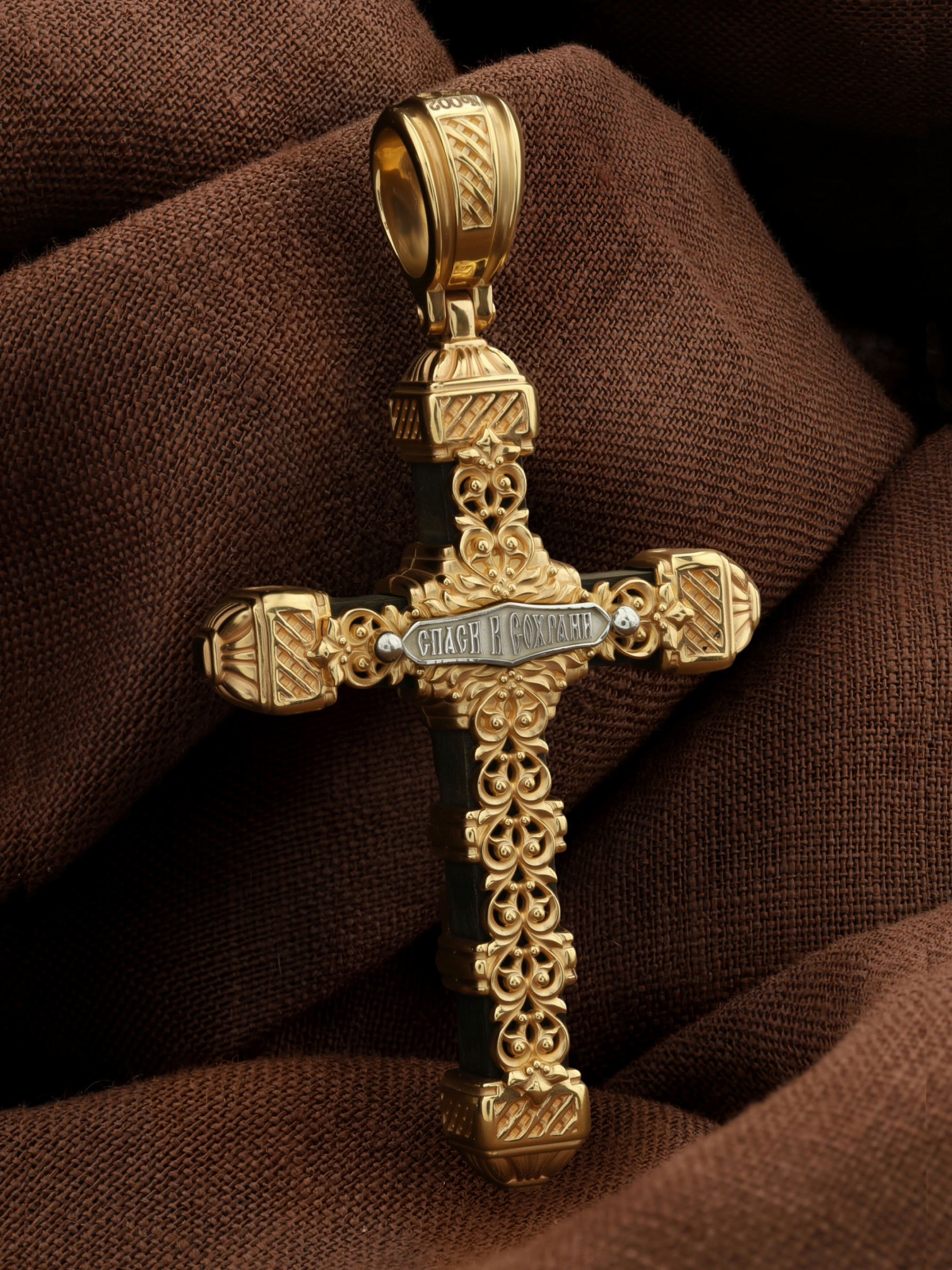 Крест из лимонного золота c эбеновым деревом
