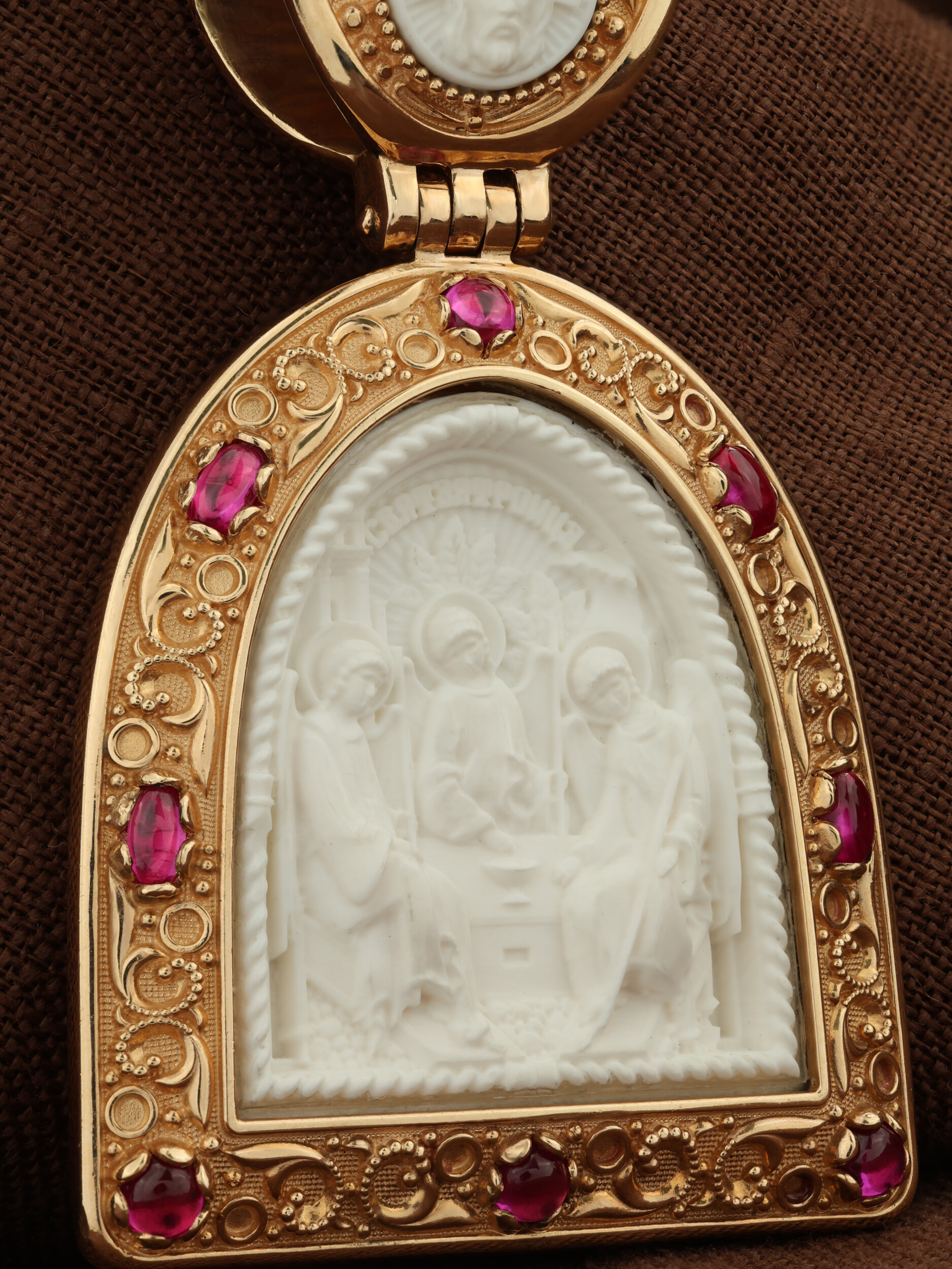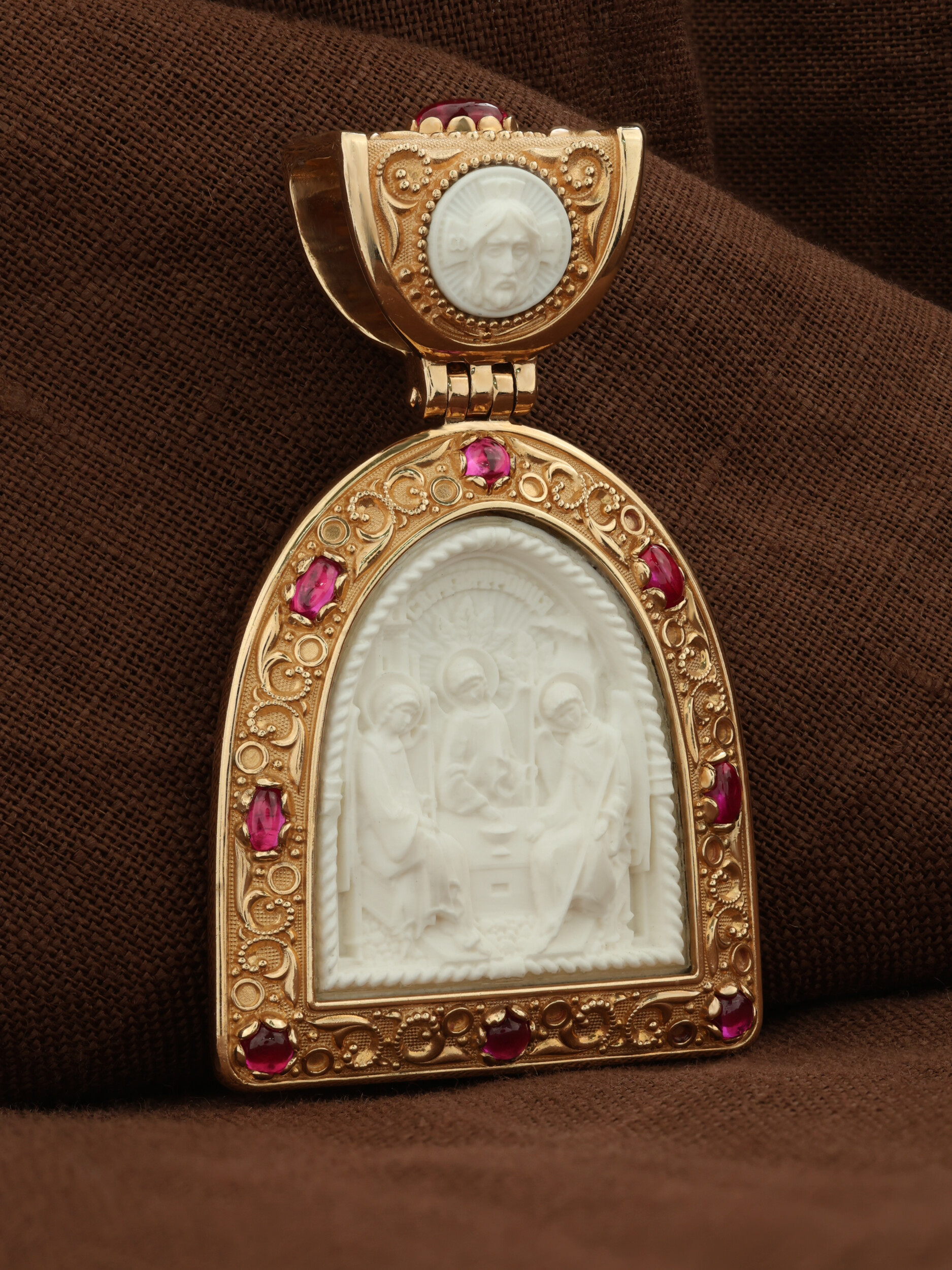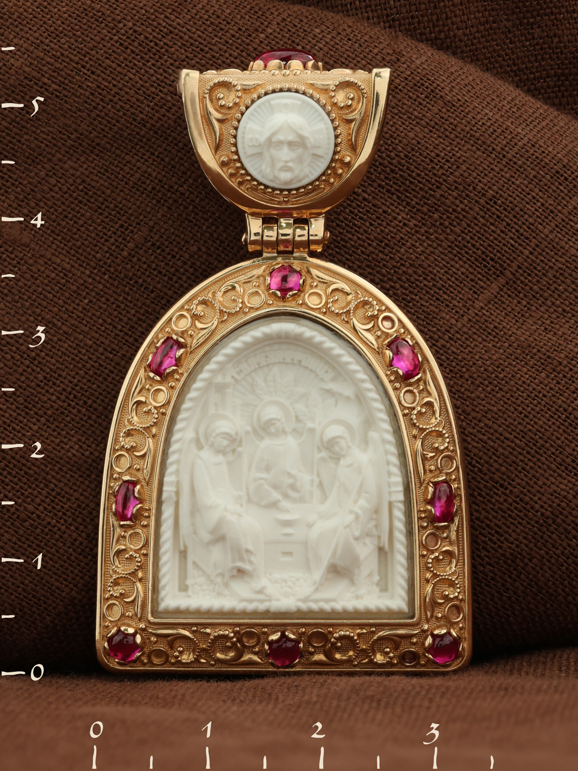 Образок из золота c эмаль, рубином и бивнем мамонта