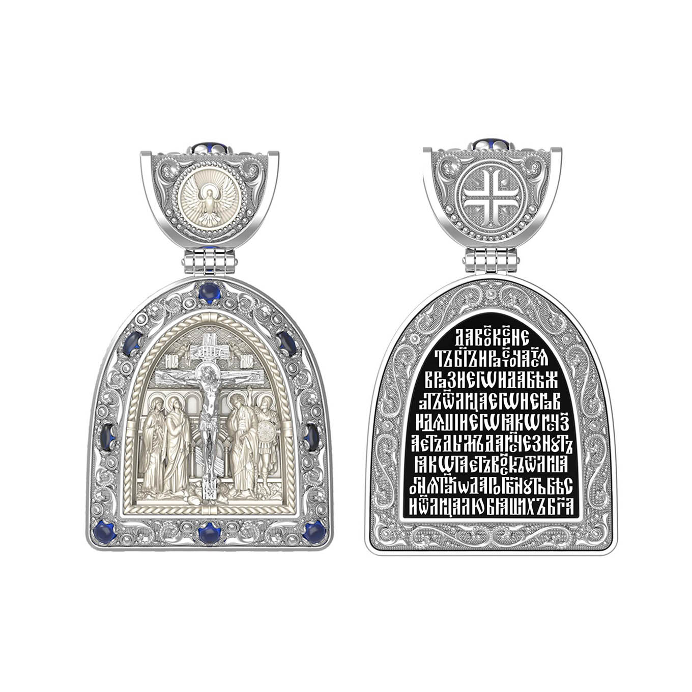 Образок из белого золота c эмалью, сапфиром и бивнем мамонта