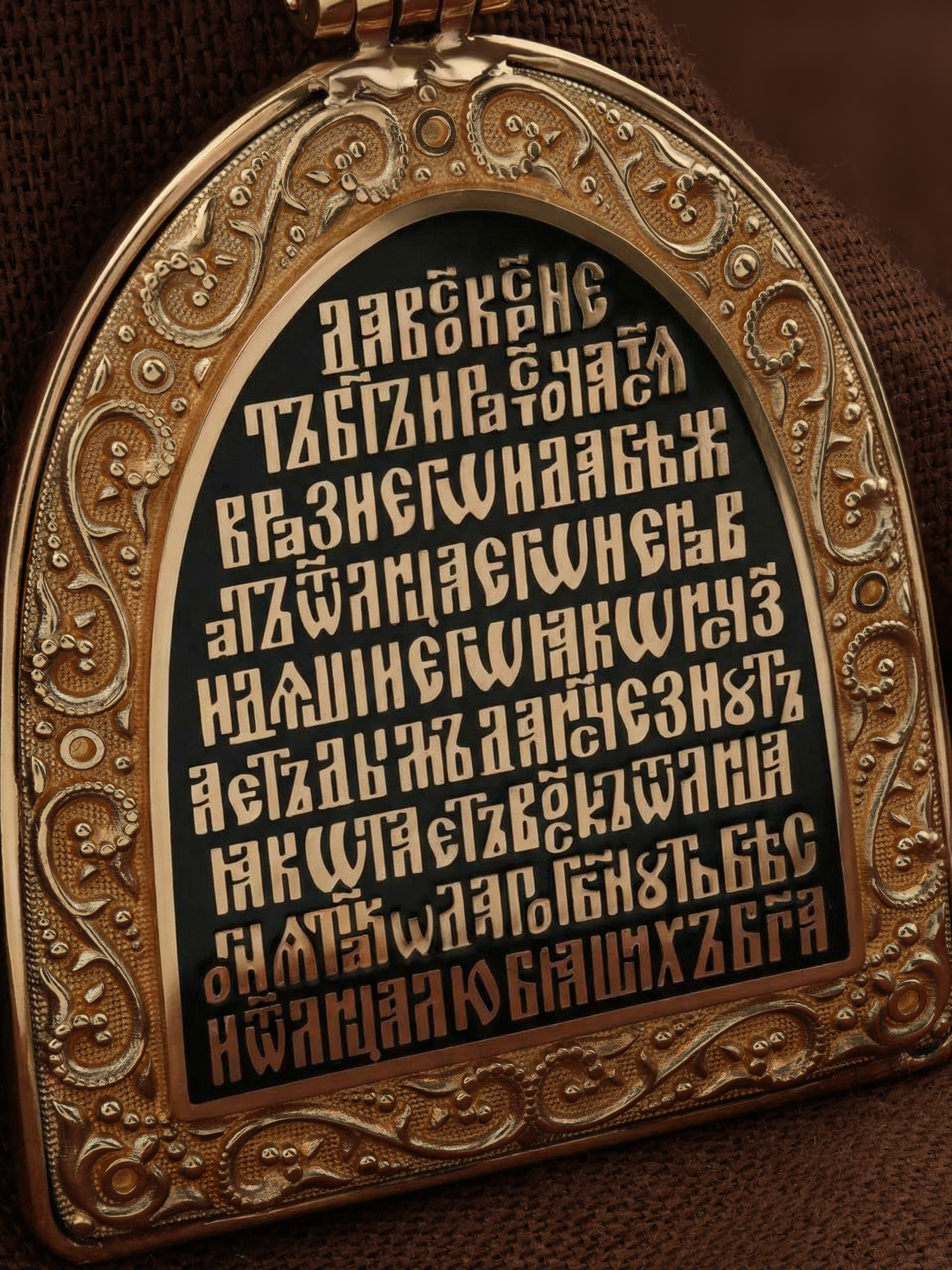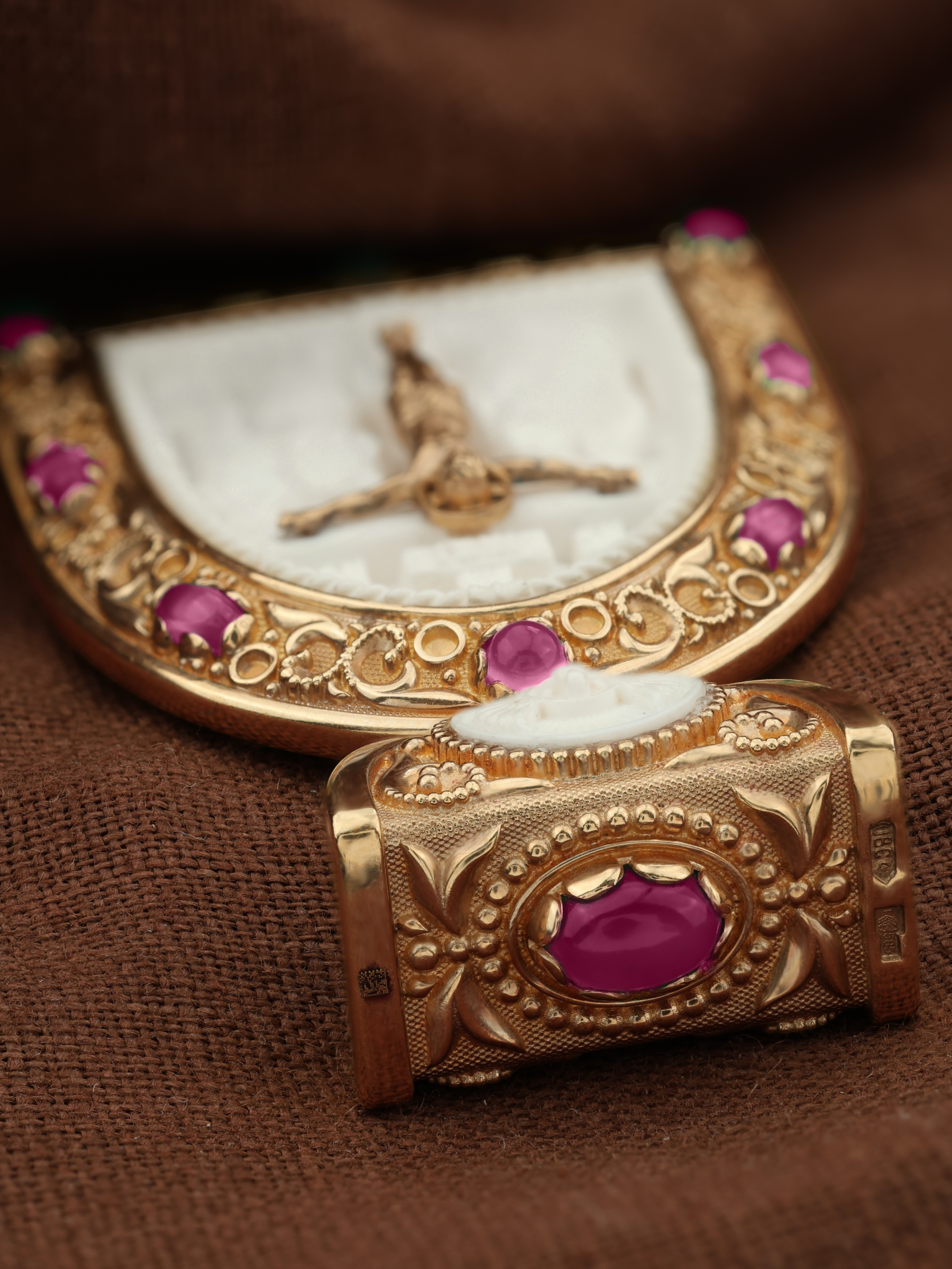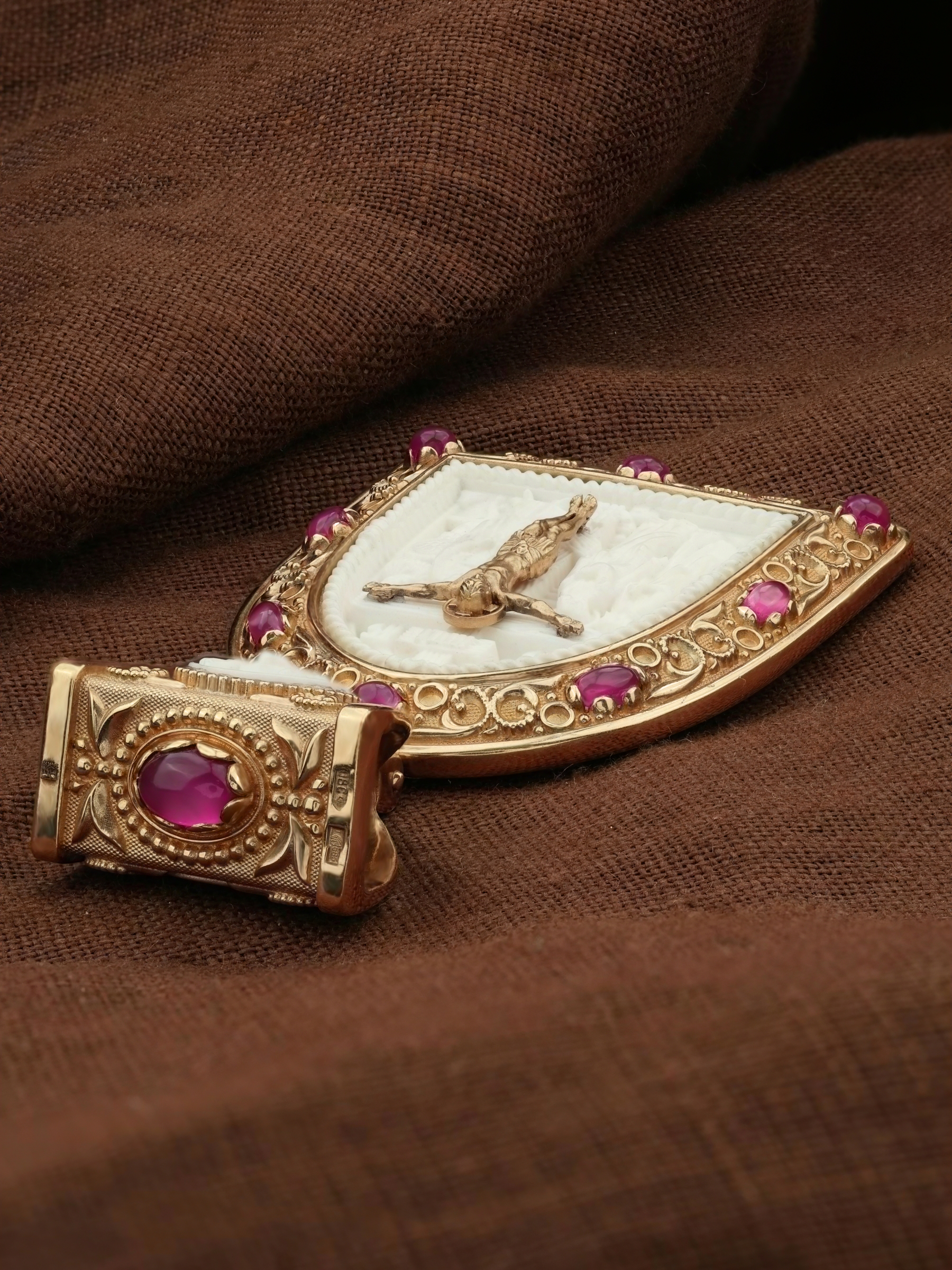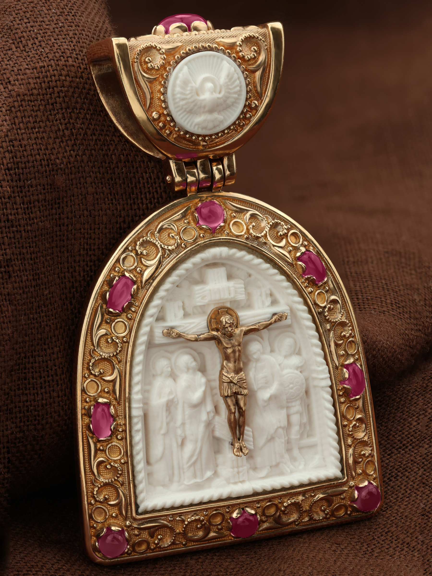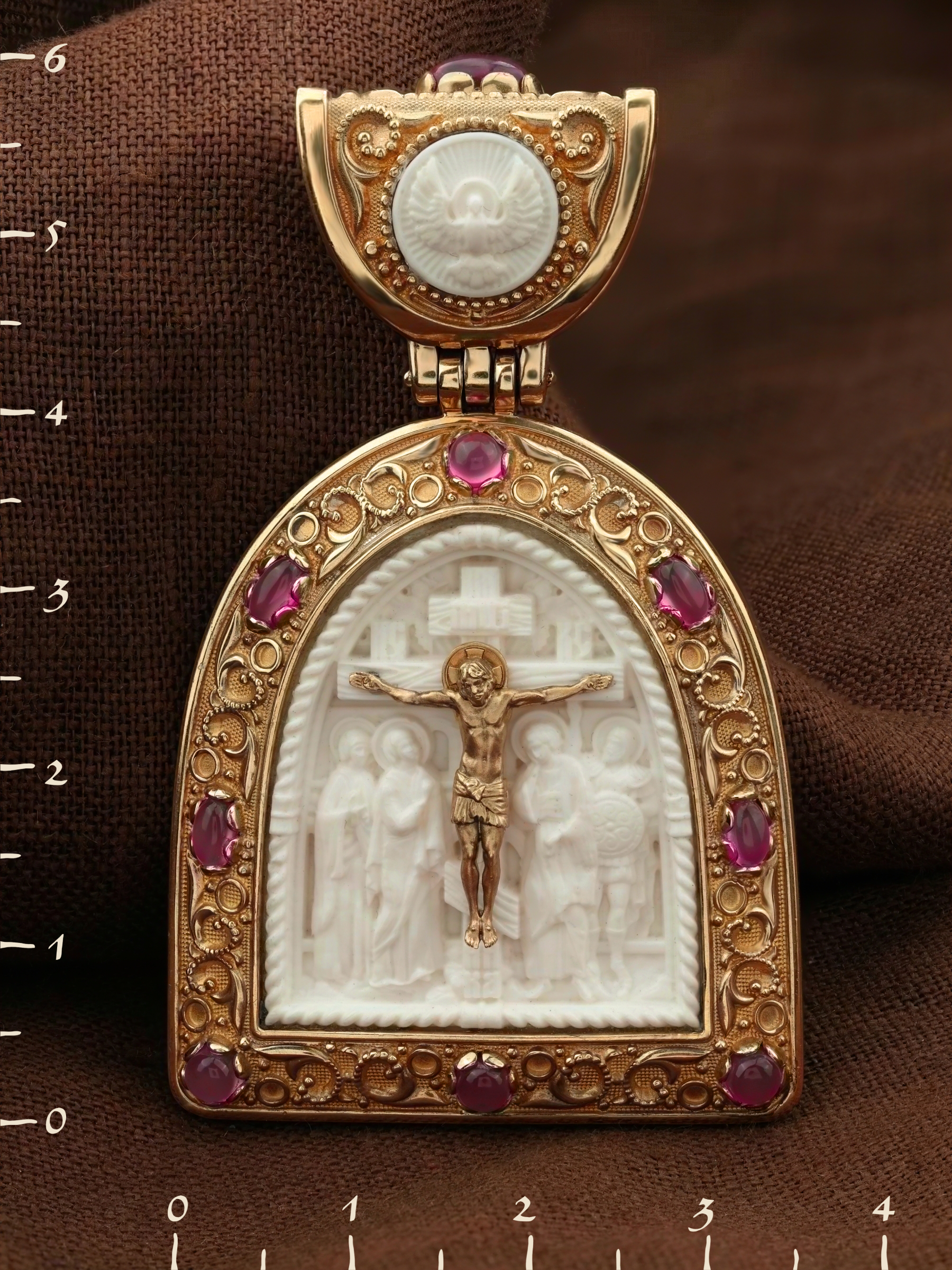 Образок из золота c эмаль, рубином и бивнем мамонта