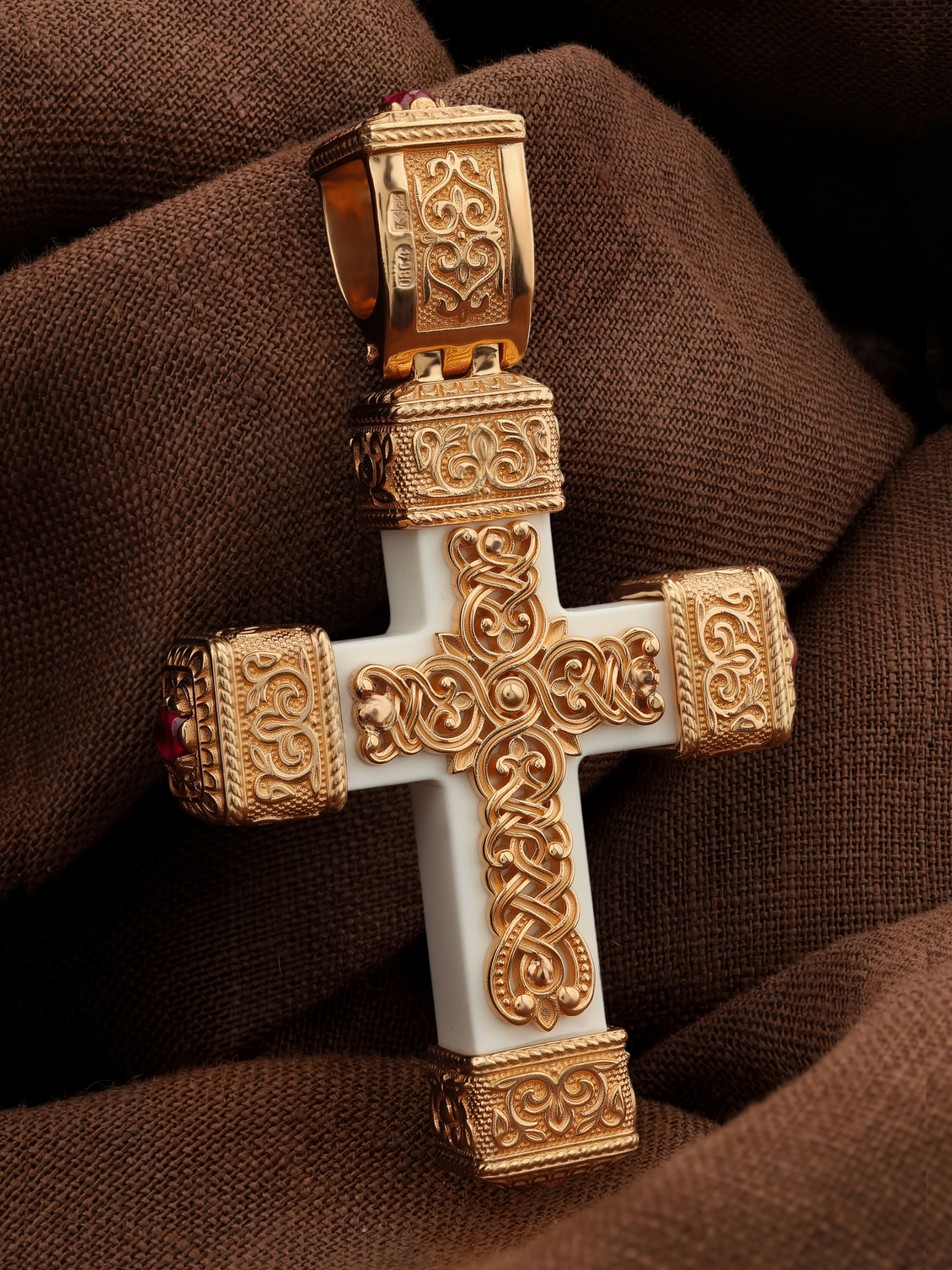 Крест из золота c эмалью, рубином и бивнем мамонта