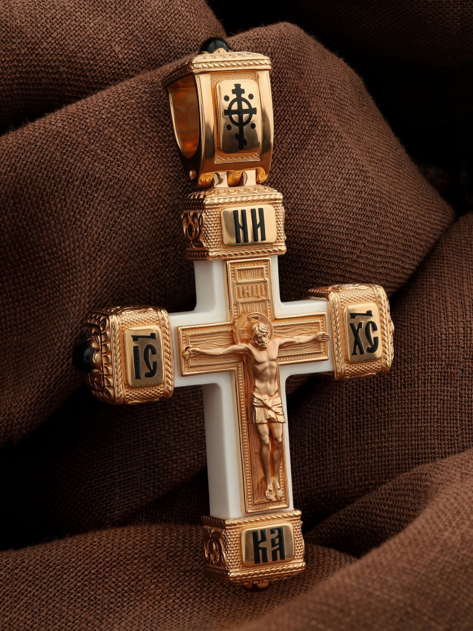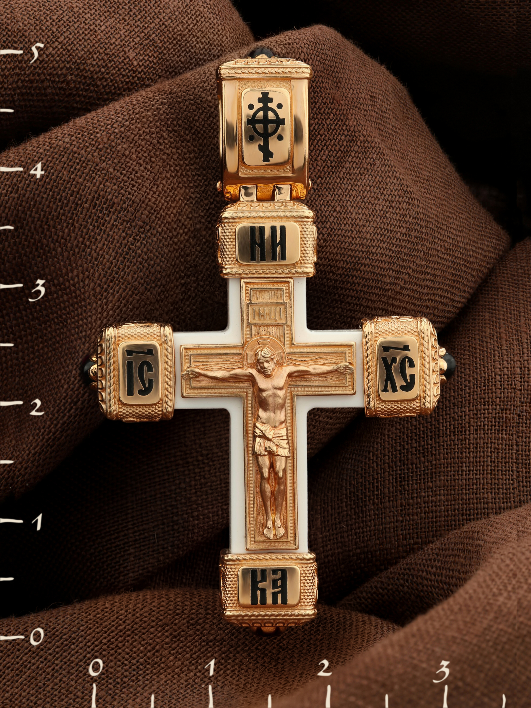 Крест из золота c эмаль, ониксом и бивнем мамонта