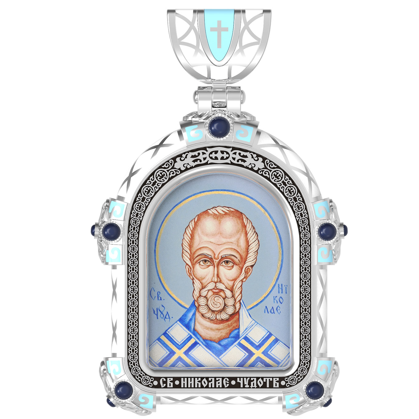 На лицевой стороне образка изображен Святитель Николай архиепископ Мир Ликийских, Чудотворец. Он является одним из самых известных на Руси святых, издревле считающийся помощником и молитвенником за всех, притекающих к нему. Чудес его исчислить невозможно. Николай Чудотворец подавал многим исцеления в болезнях и телесных недугах, обогащал бедствующих в крайней нищете, подавал голодным пищу, спасал от потопления, освобождал из плена и избавлял от смерти.