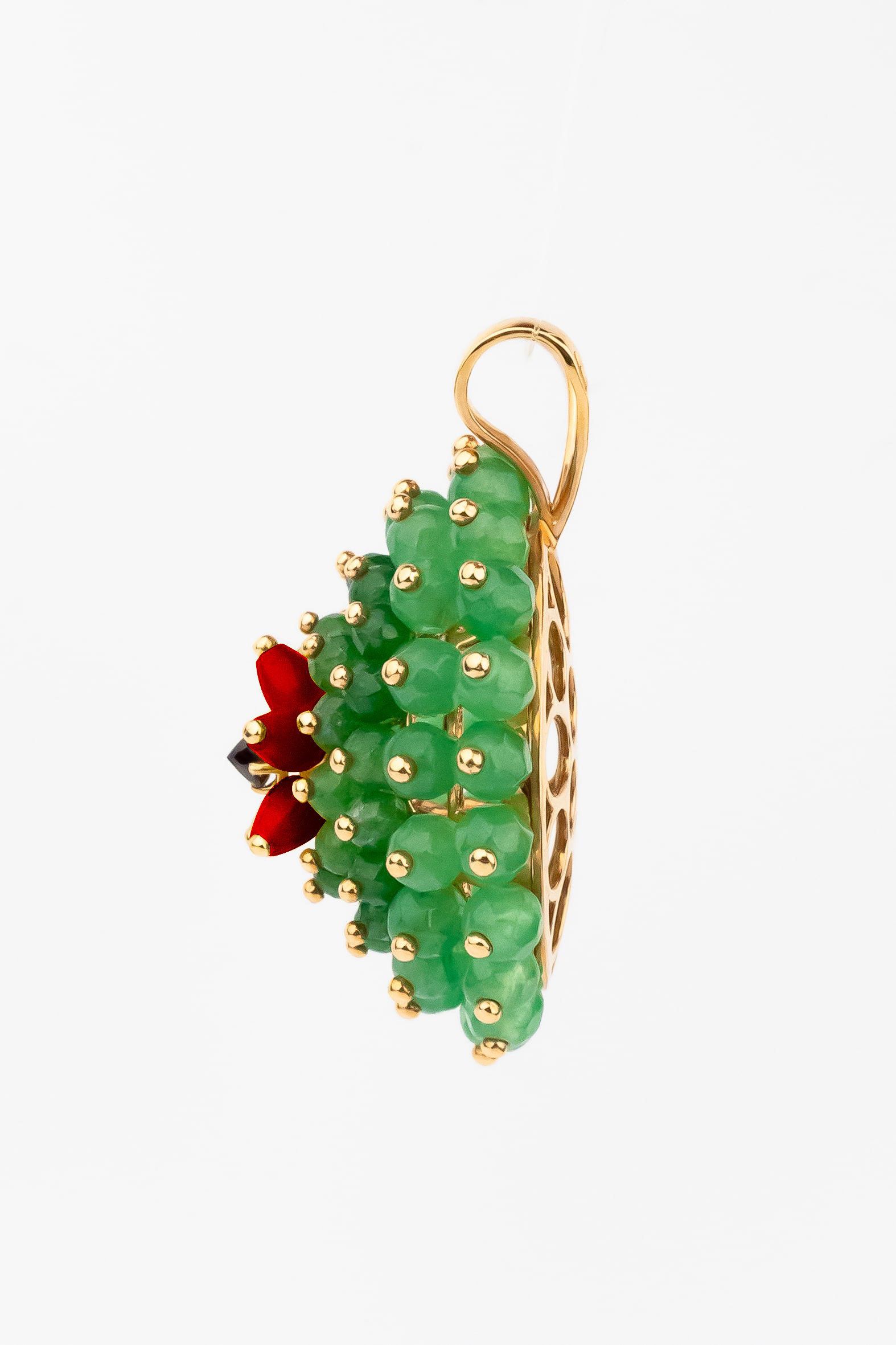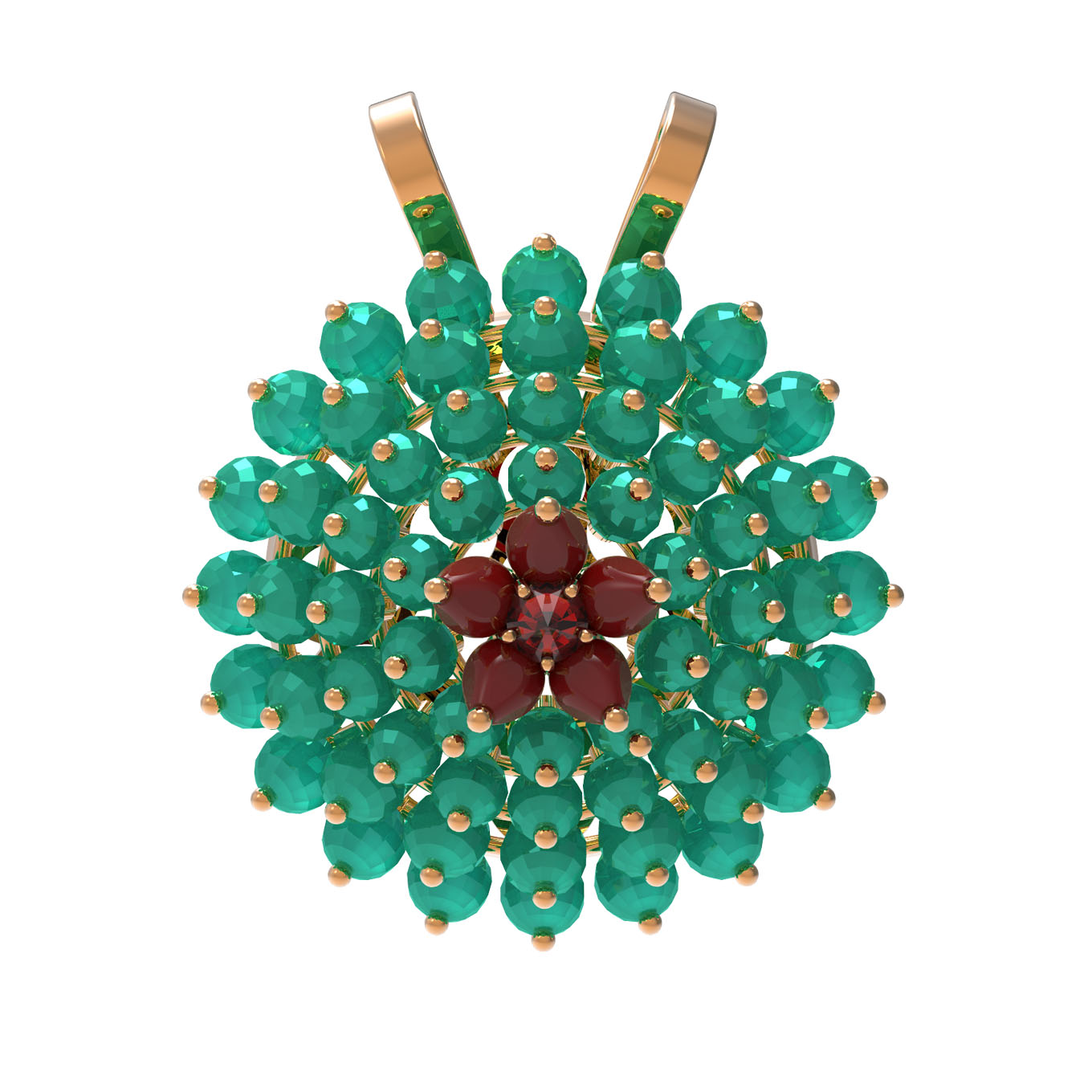 Подвеска из золота c гранатом, хризопразом и кораллом