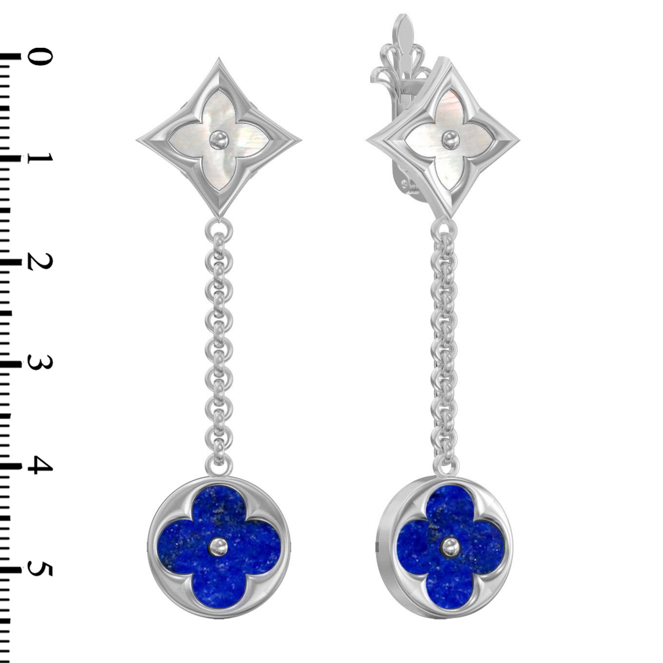 Серьги из белого золота c лазуритом и перламутром