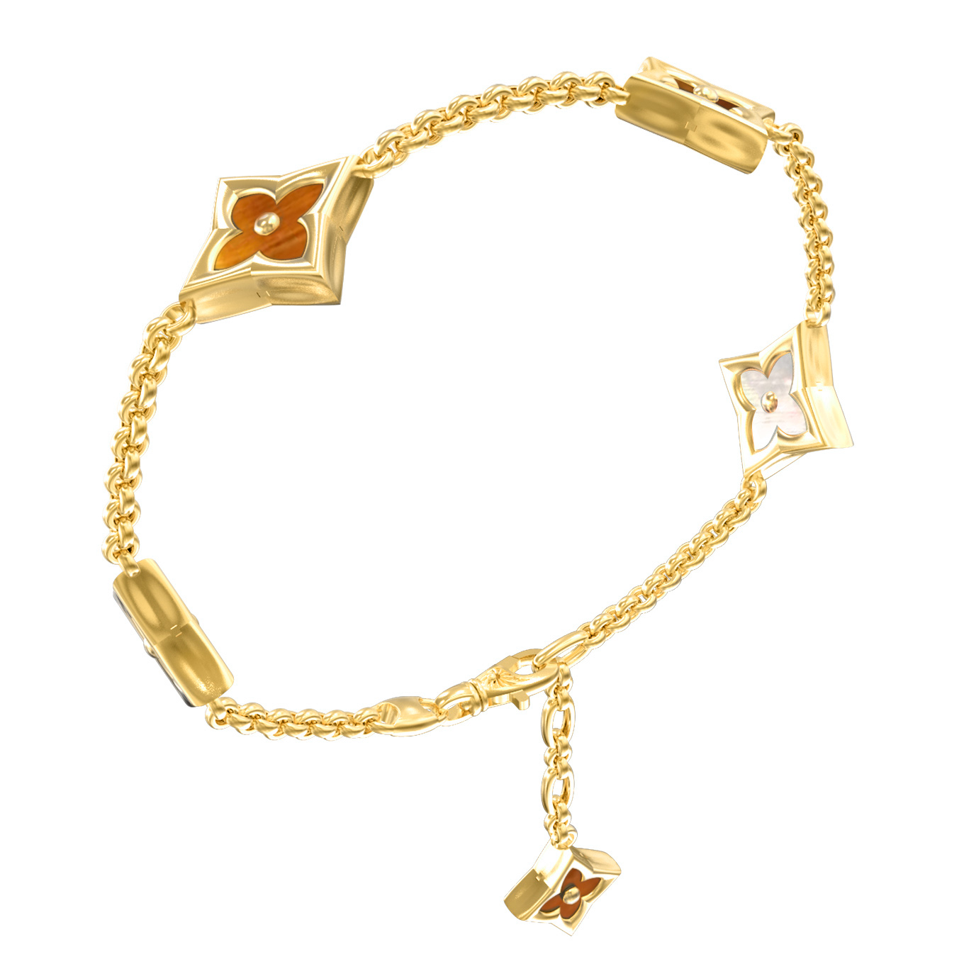 Браслет из лимонного золота c тигровым глазом и перламутром