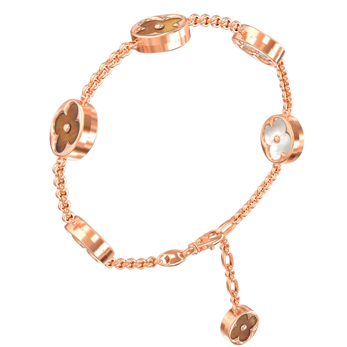 Браслет из золота c тигровым глазом и перламутром