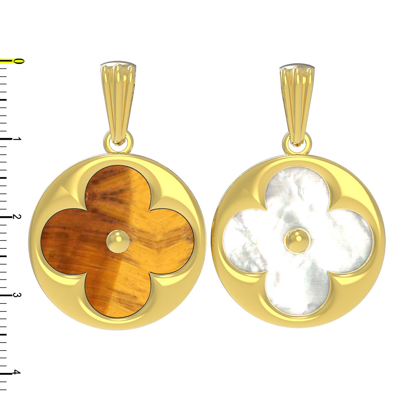 Подвеска из лимонного золота c тигровым глазом и перламутром