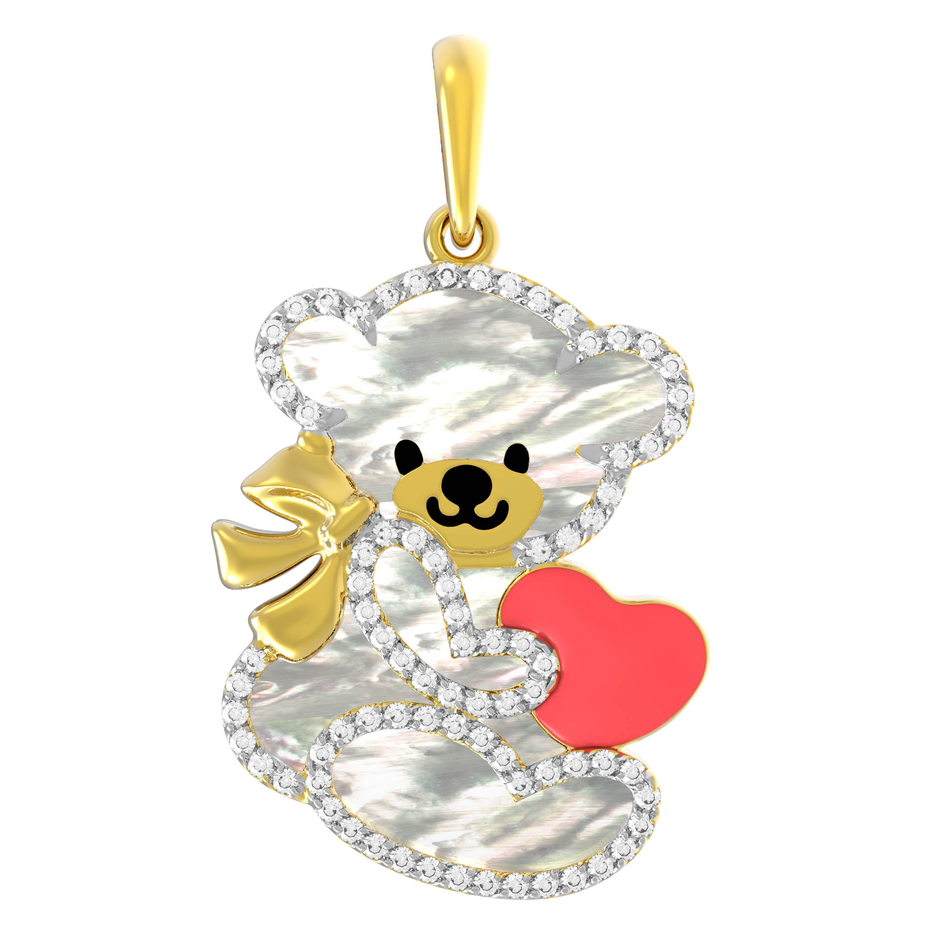 Подвеска из лимонного золота c эмалью, фианитом и перламутром