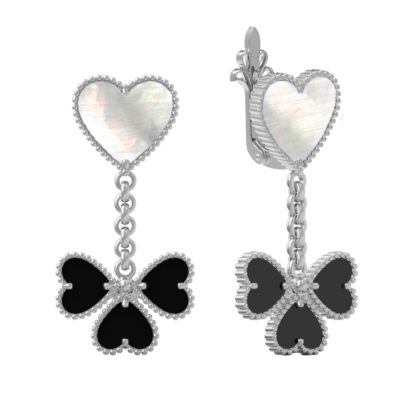 • Серьги из белого золота c ониксом и перламутром