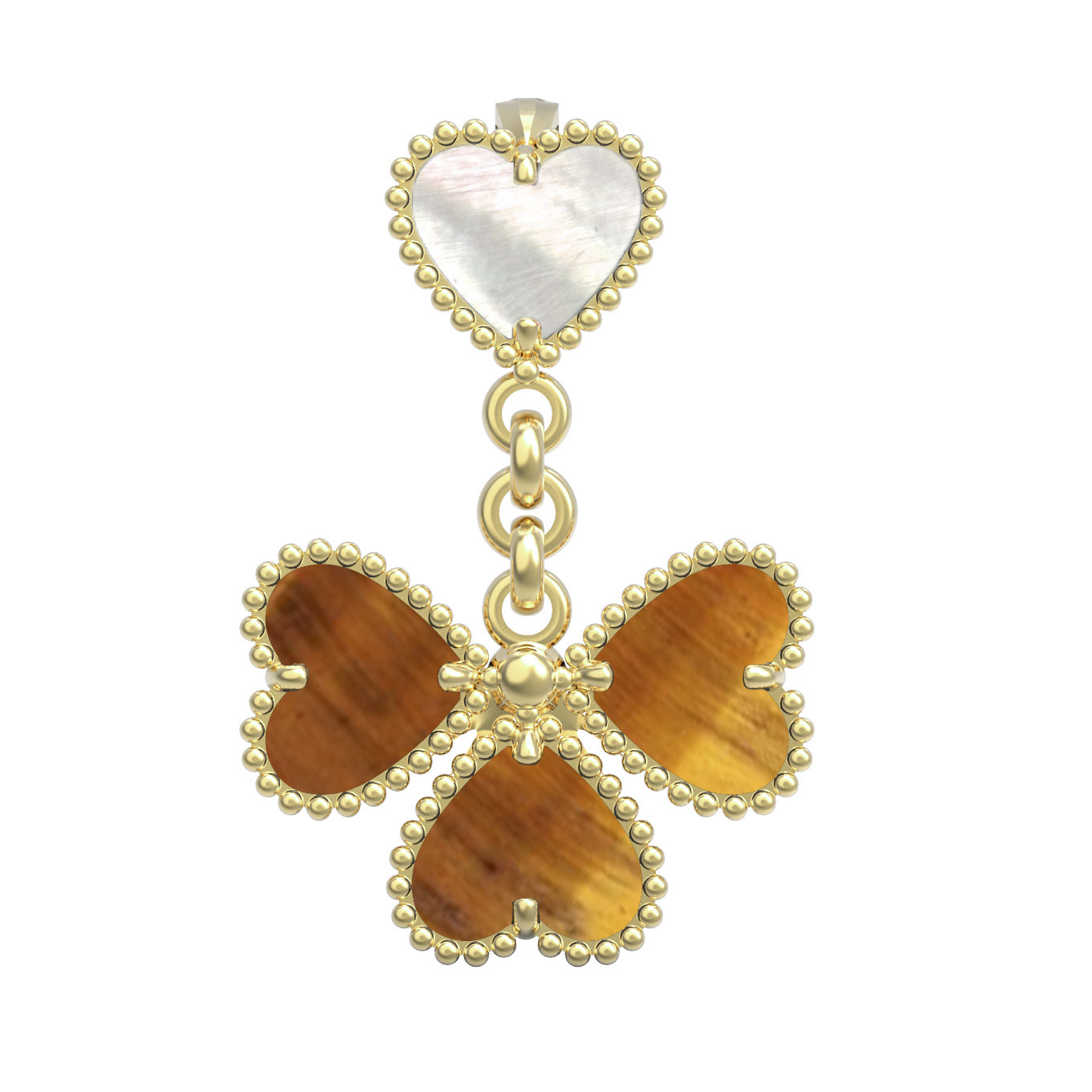 Подвеска из лимонного золота c тигровым глазом и перламутром