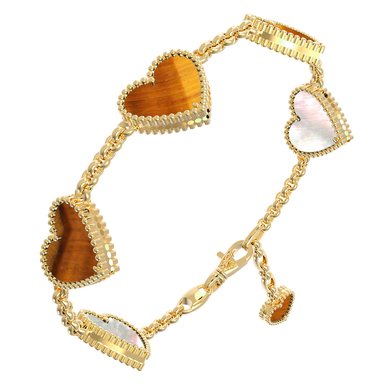 Браслет из лимонного золота c тигровым глазом и перламутром