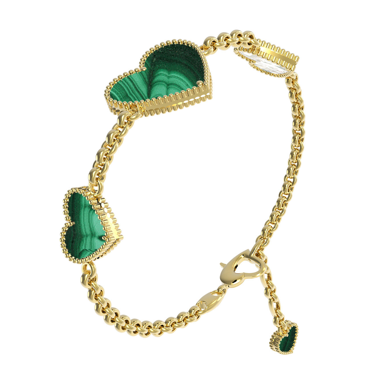 • Браслет из лимонного золота c малахитом и перламутром