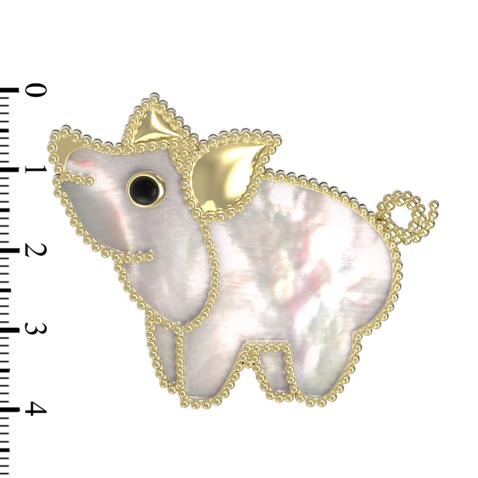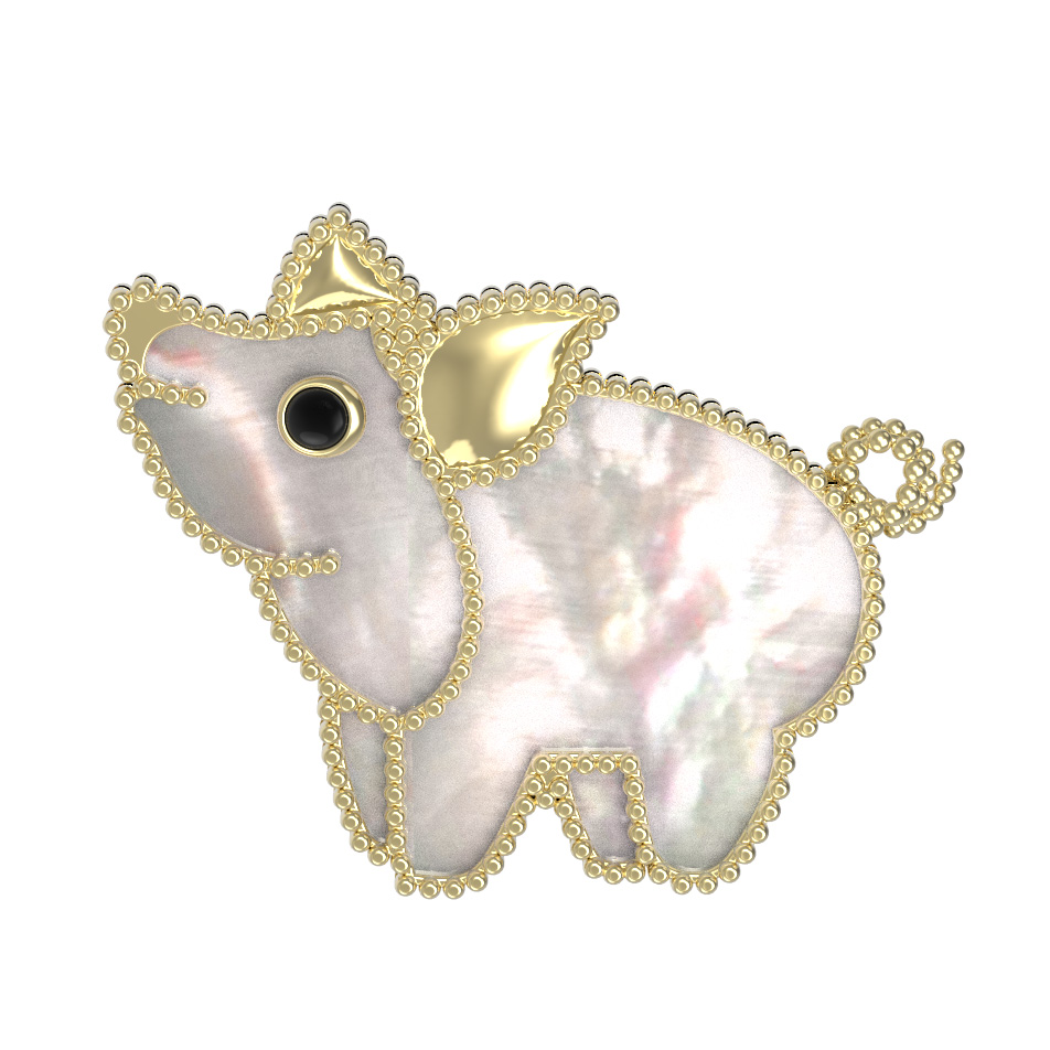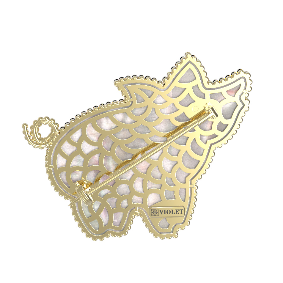 Брошь из лимонного золота c эмаль и перламутром