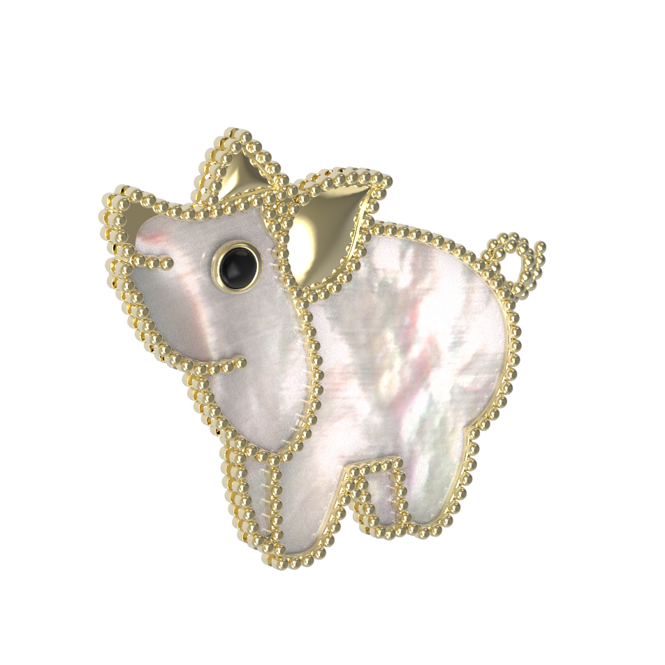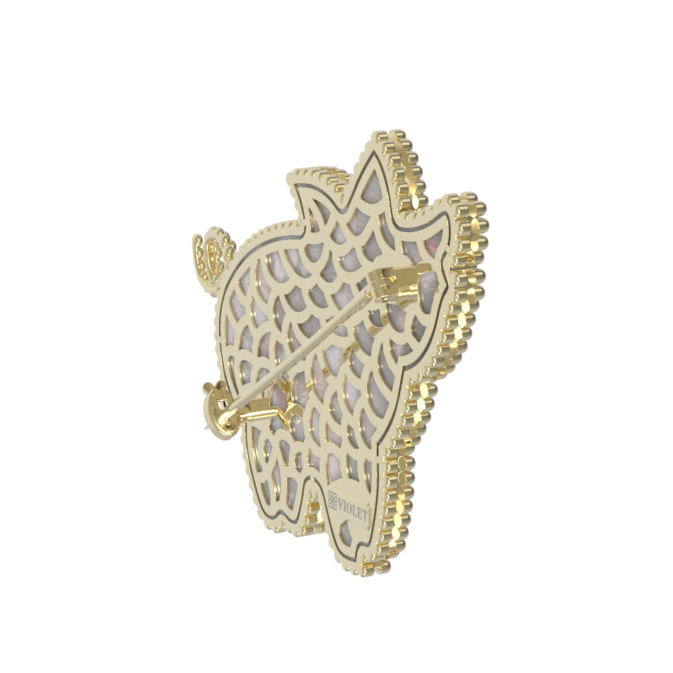 Брошь из лимонного золота c эмаль и перламутром