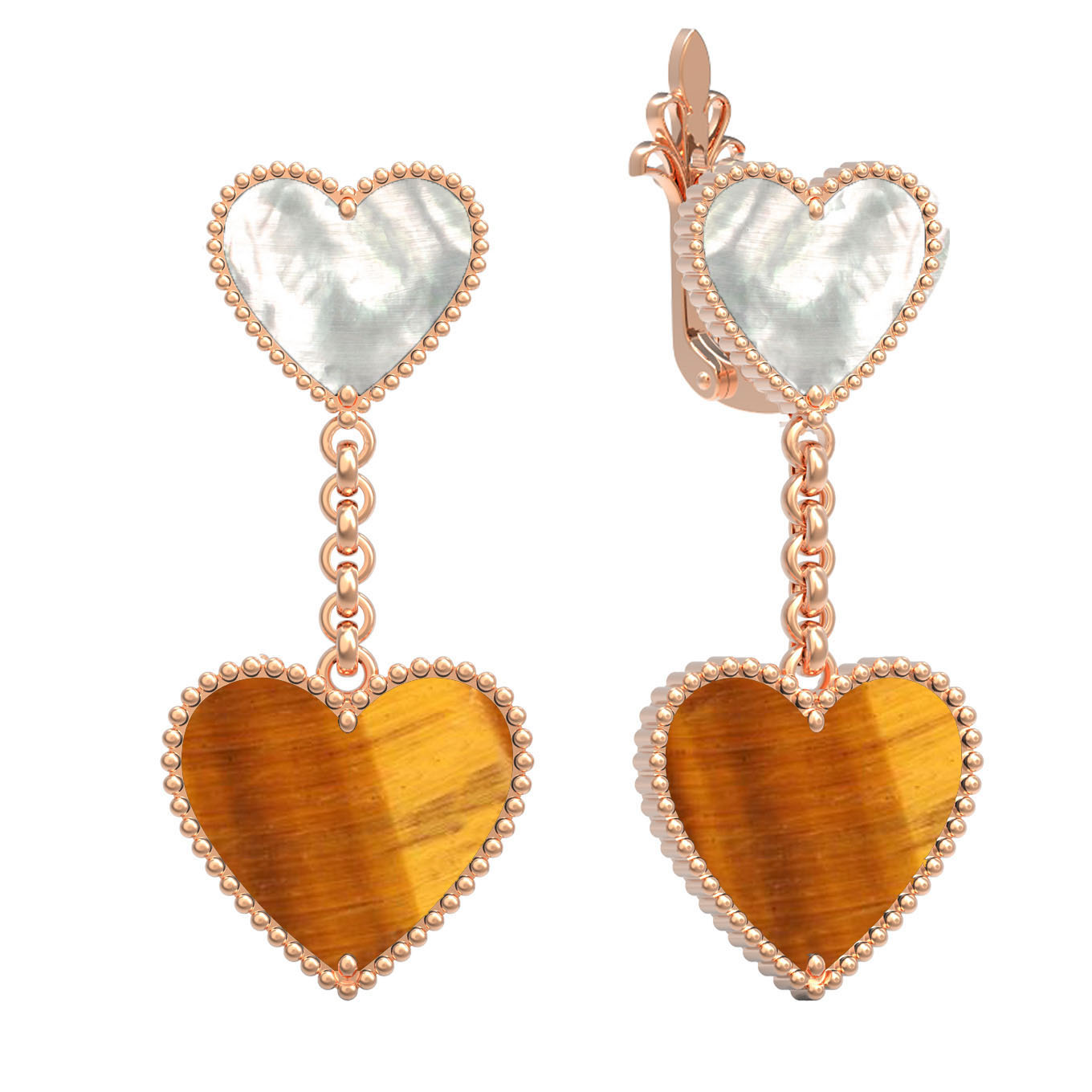 • Серьги из золота c тигровым глазом и перламутром