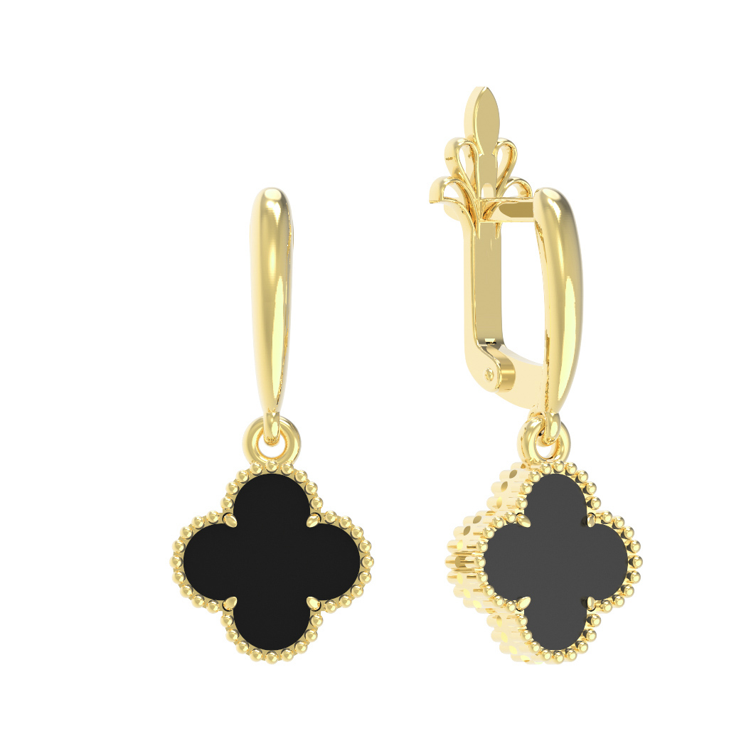 Серьги из лимонного золота c ониксом