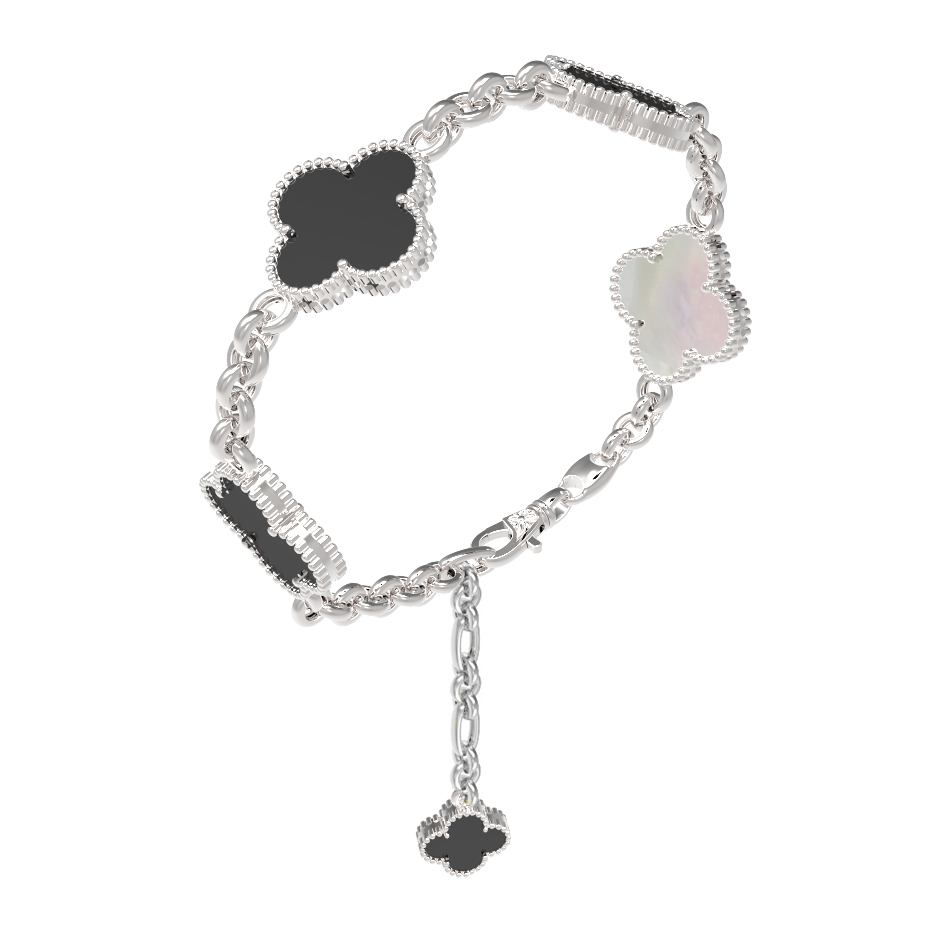 Браслет из белого золота c ониксом и перламутром