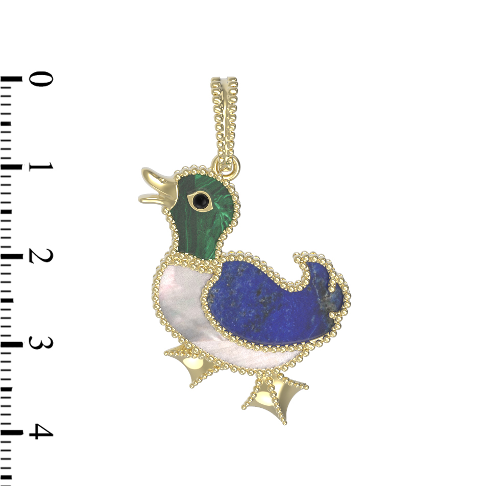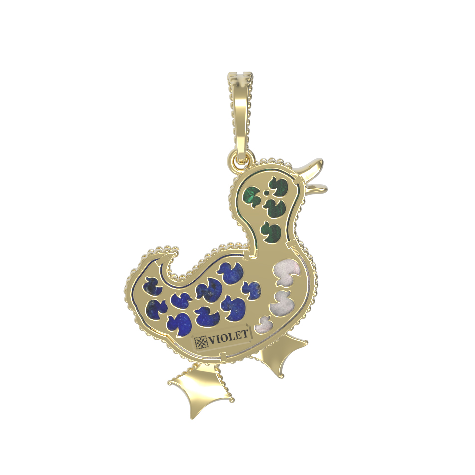 Подвеска из лимонного золота c эмаль, лазуритом, малахитом и перламутром