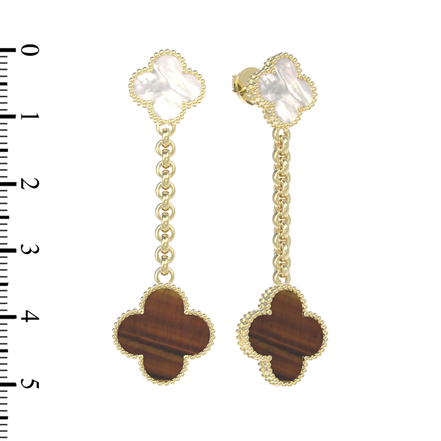 Серьги из лимонного золота c тигровым глазом и перламутром
