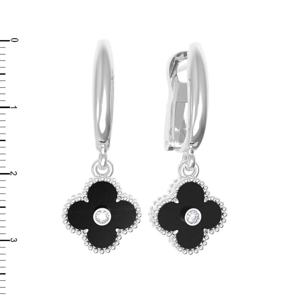 Серьги из белого золота c бриллиантами и ониксом