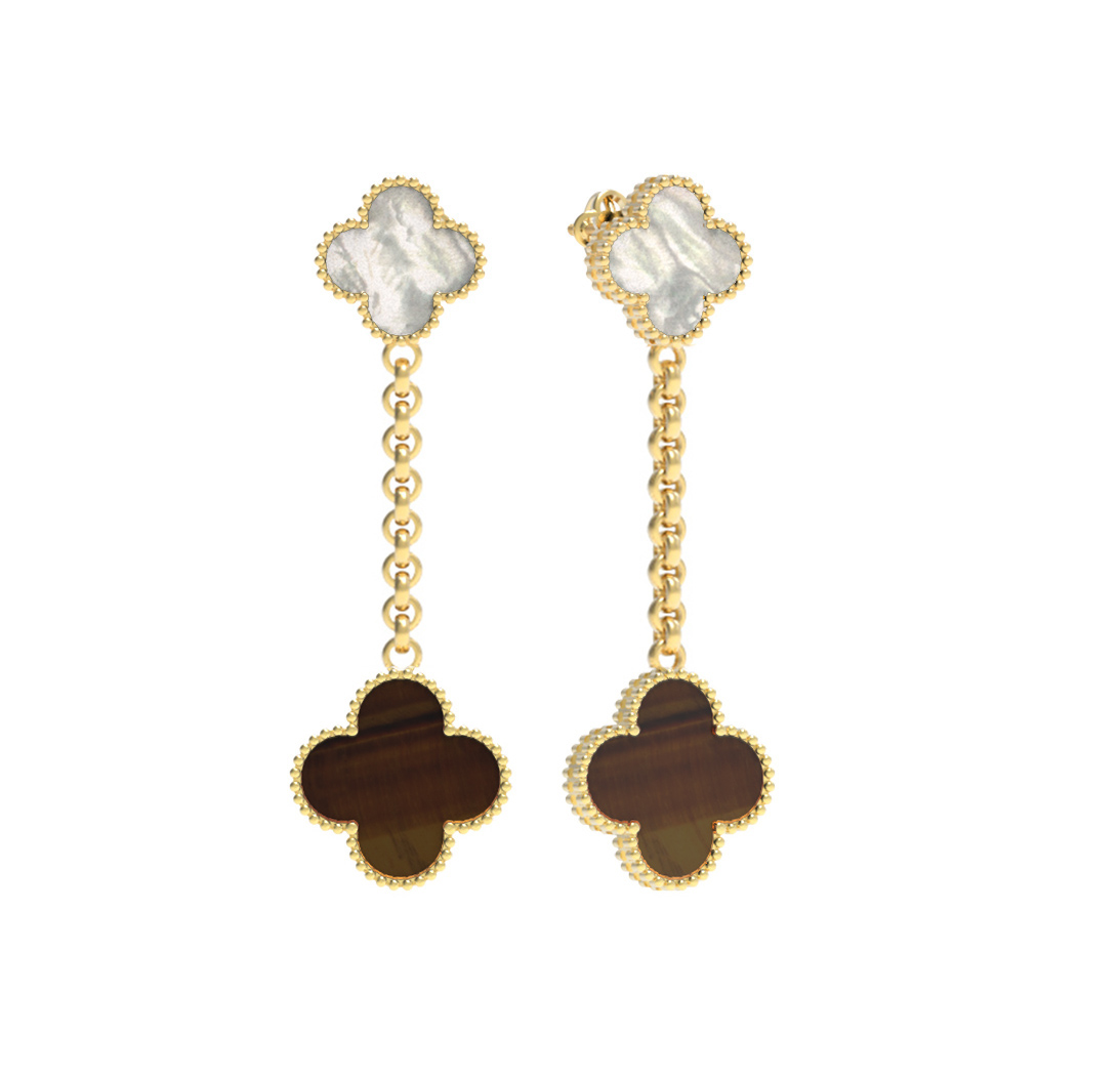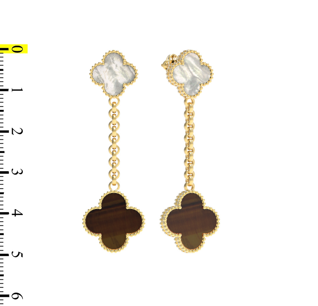 Серьги из лимонного золота c тигровым глазом и перламутром