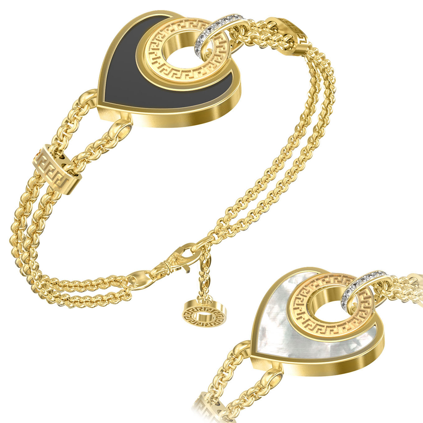 Браслет из лимонного золота c фианитом, ониксом и перламутром