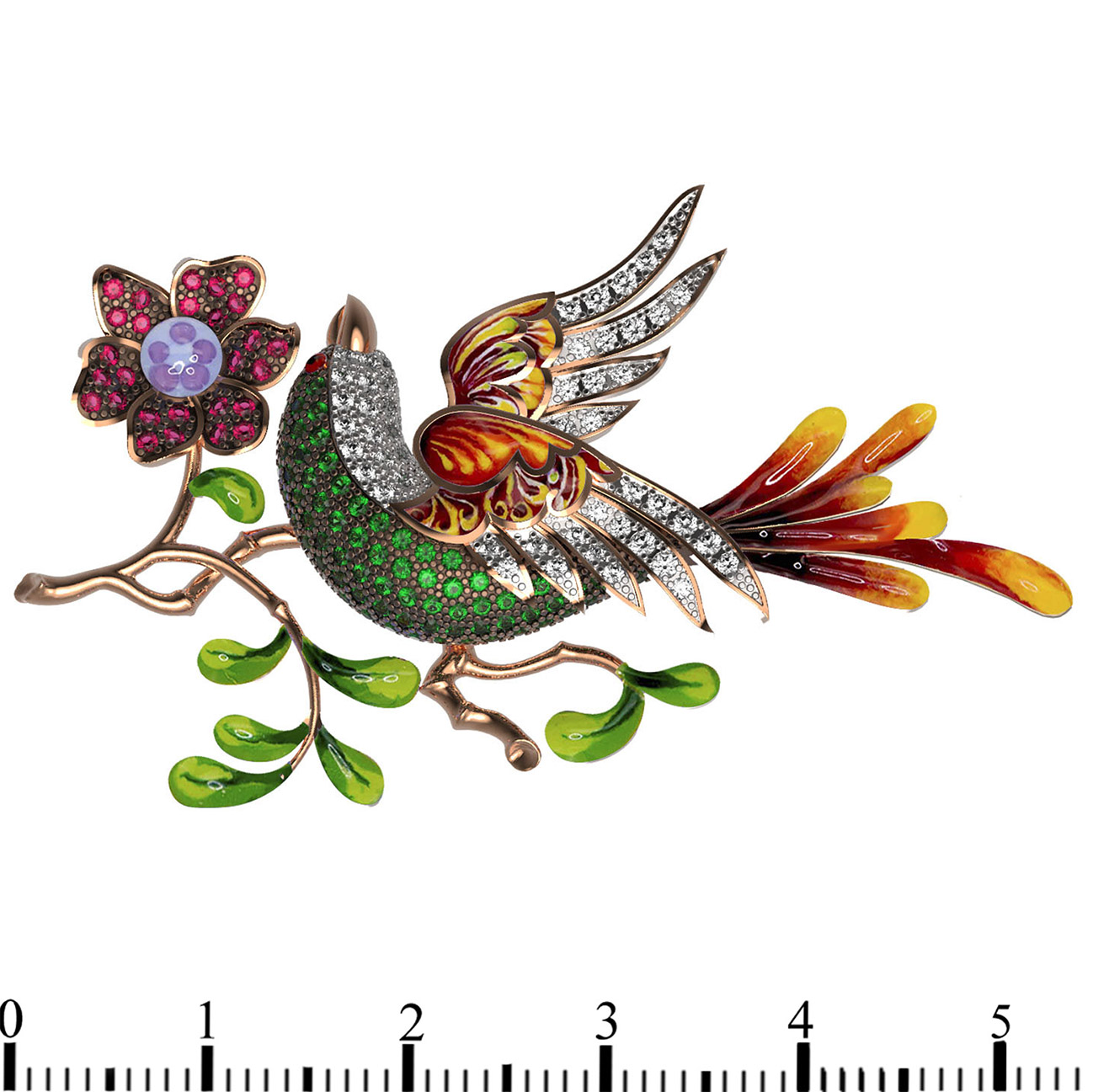 Брошь из золота c эмалью и фианитом