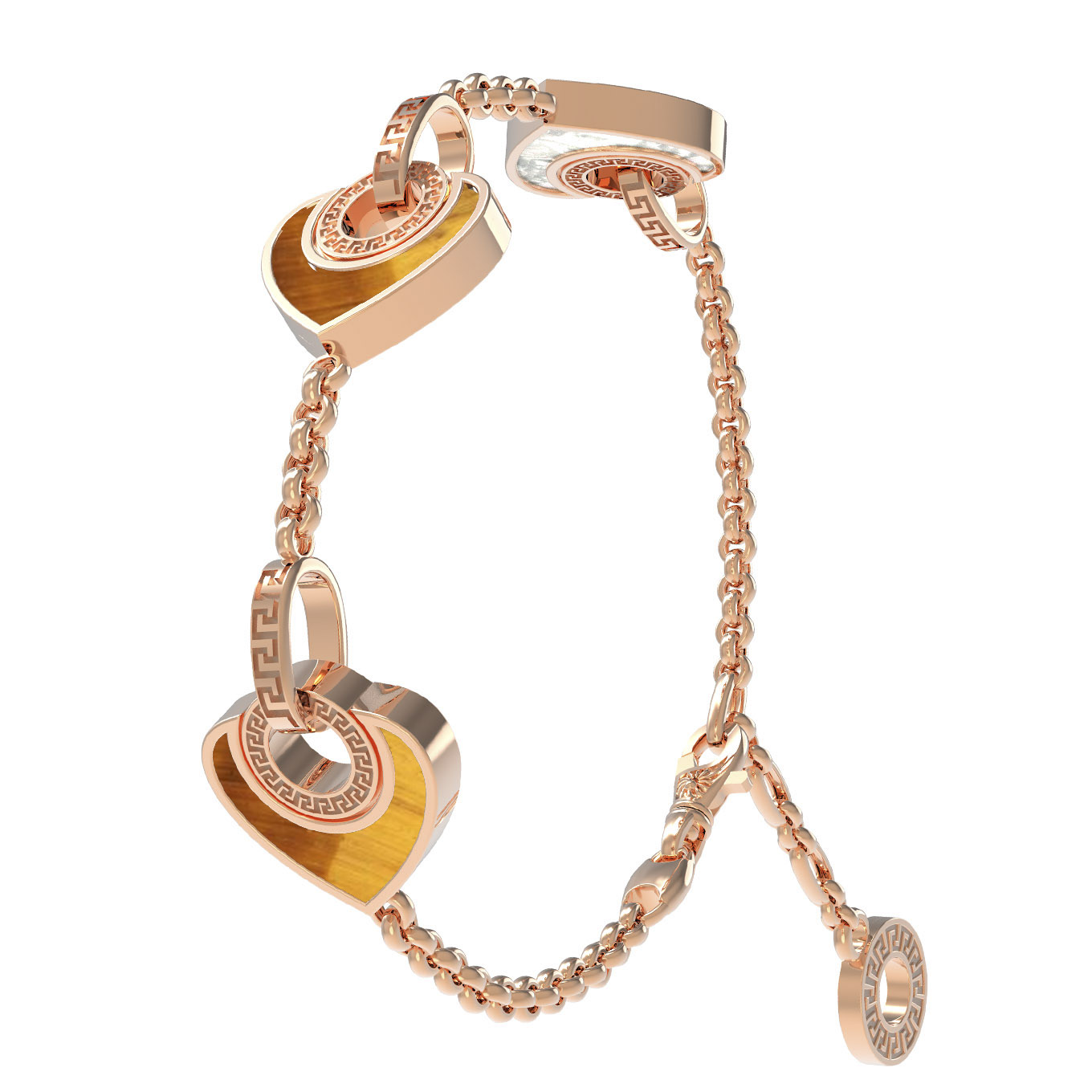Браслет из золота c тигровым глазом и перламутром