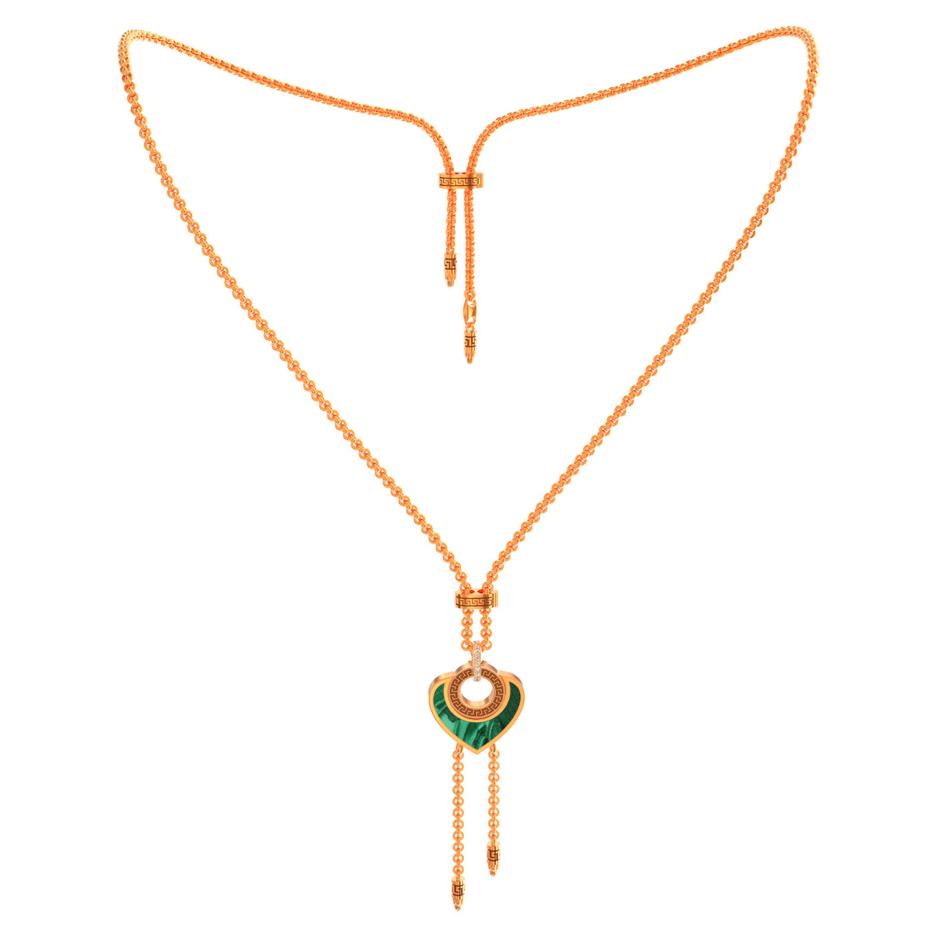 • Колье из золота c фианитом, малахитом и перламутром
