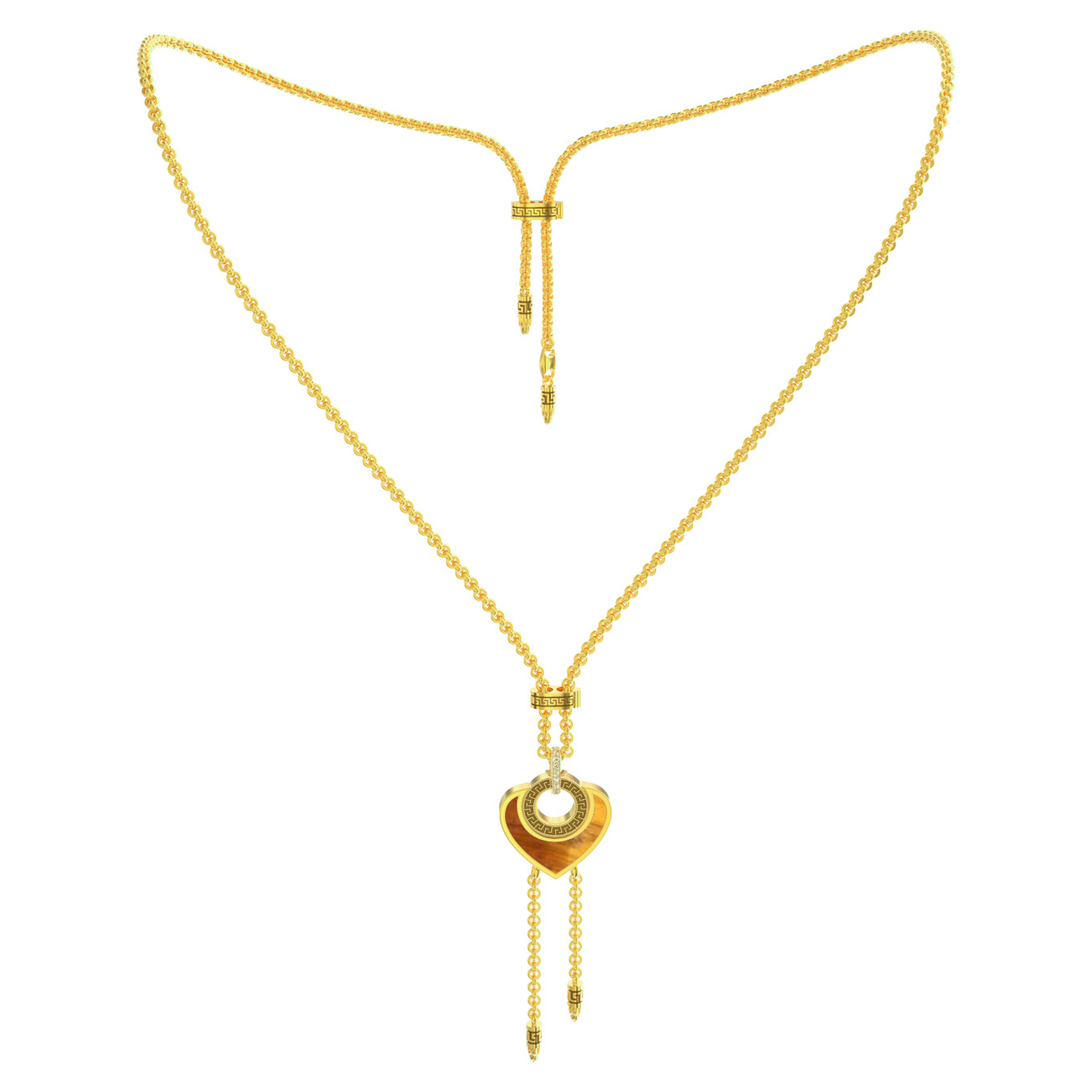 • Колье из лимонного золота c фианитом, тигровым глазом и перламутром