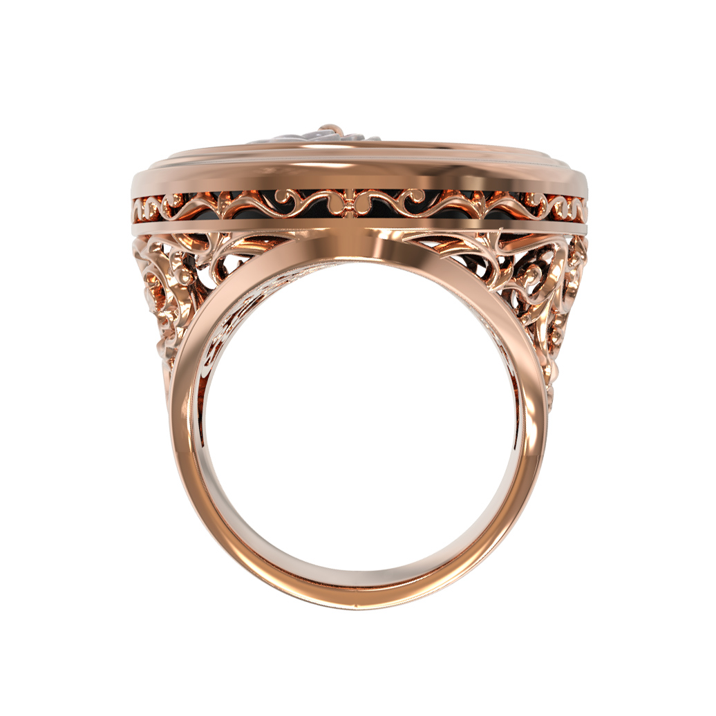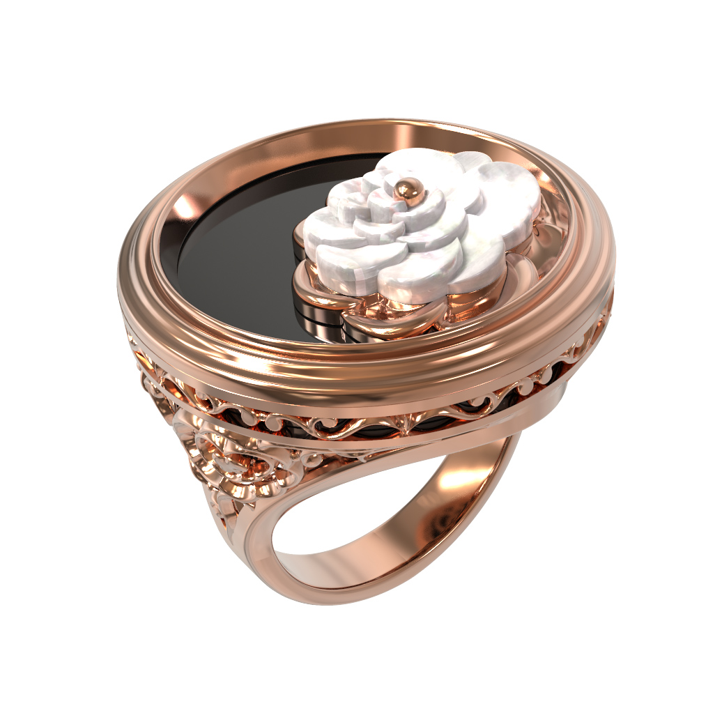 Кольцо из золота c ониксом и перламутром