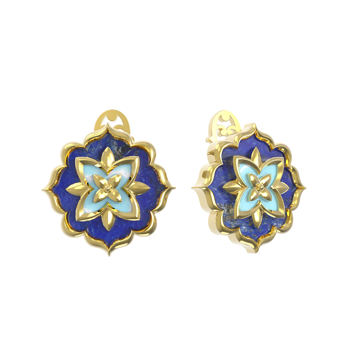 Серьги из лимонного золота c бирюзой и лазуритом