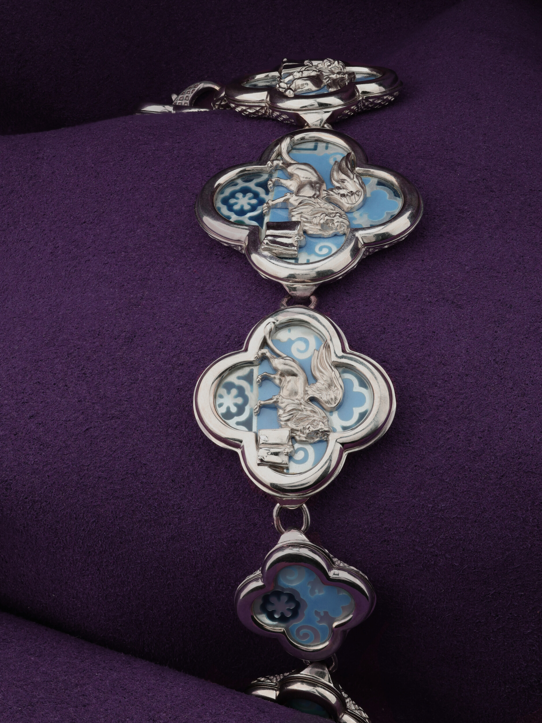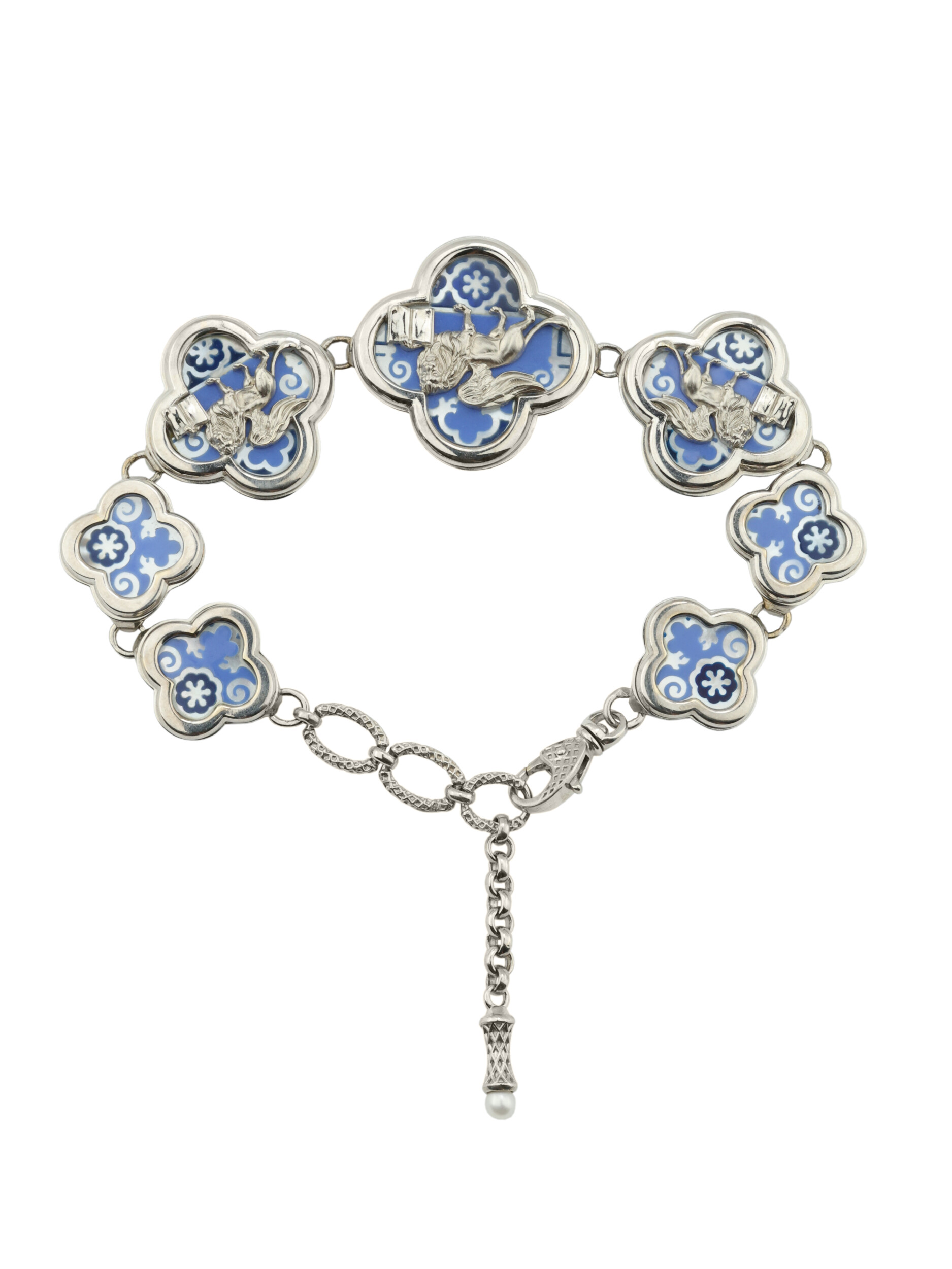 Браслет из белого золота c эмалью, жемчугом и перламутром