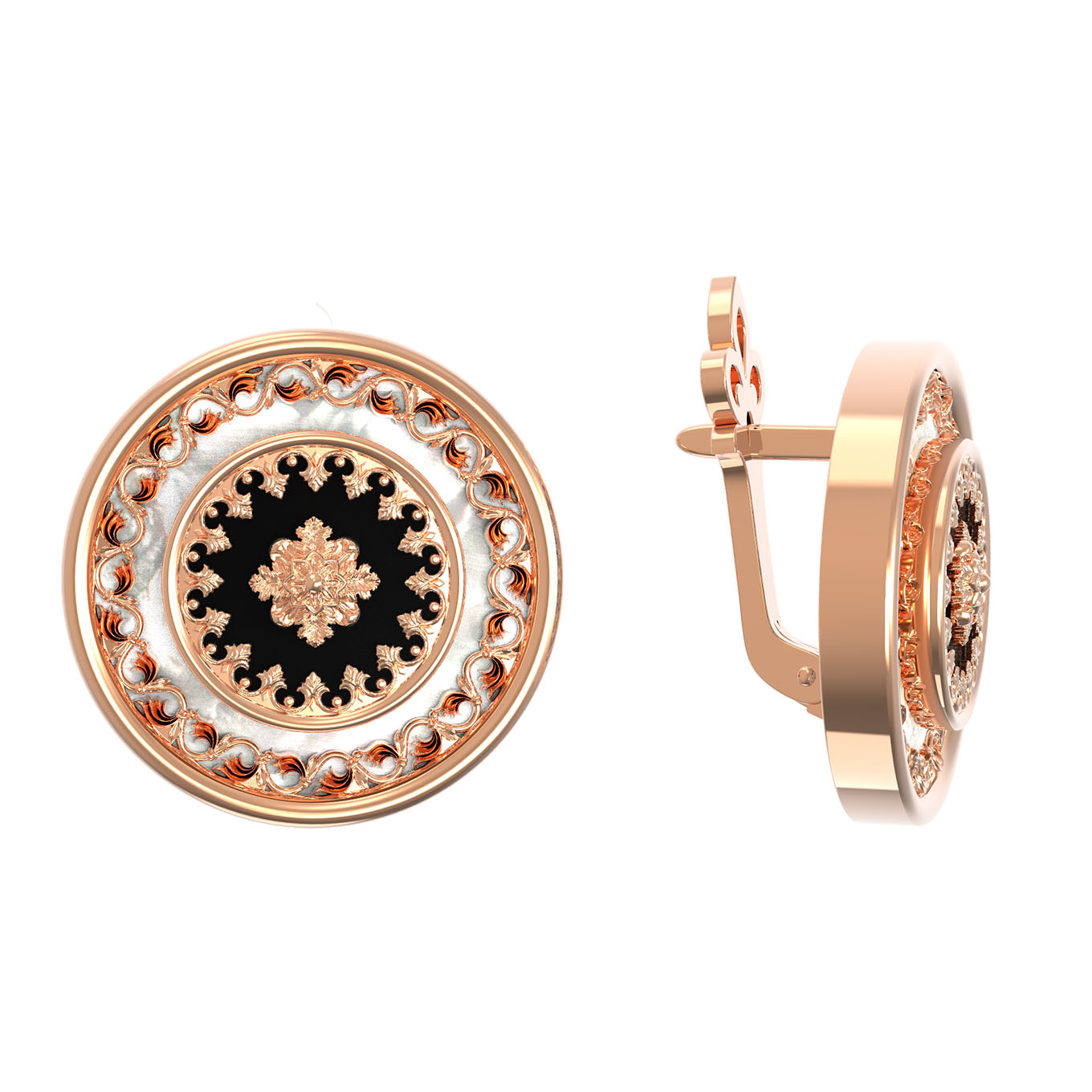 Серьги из золота c ониксом и перламутром