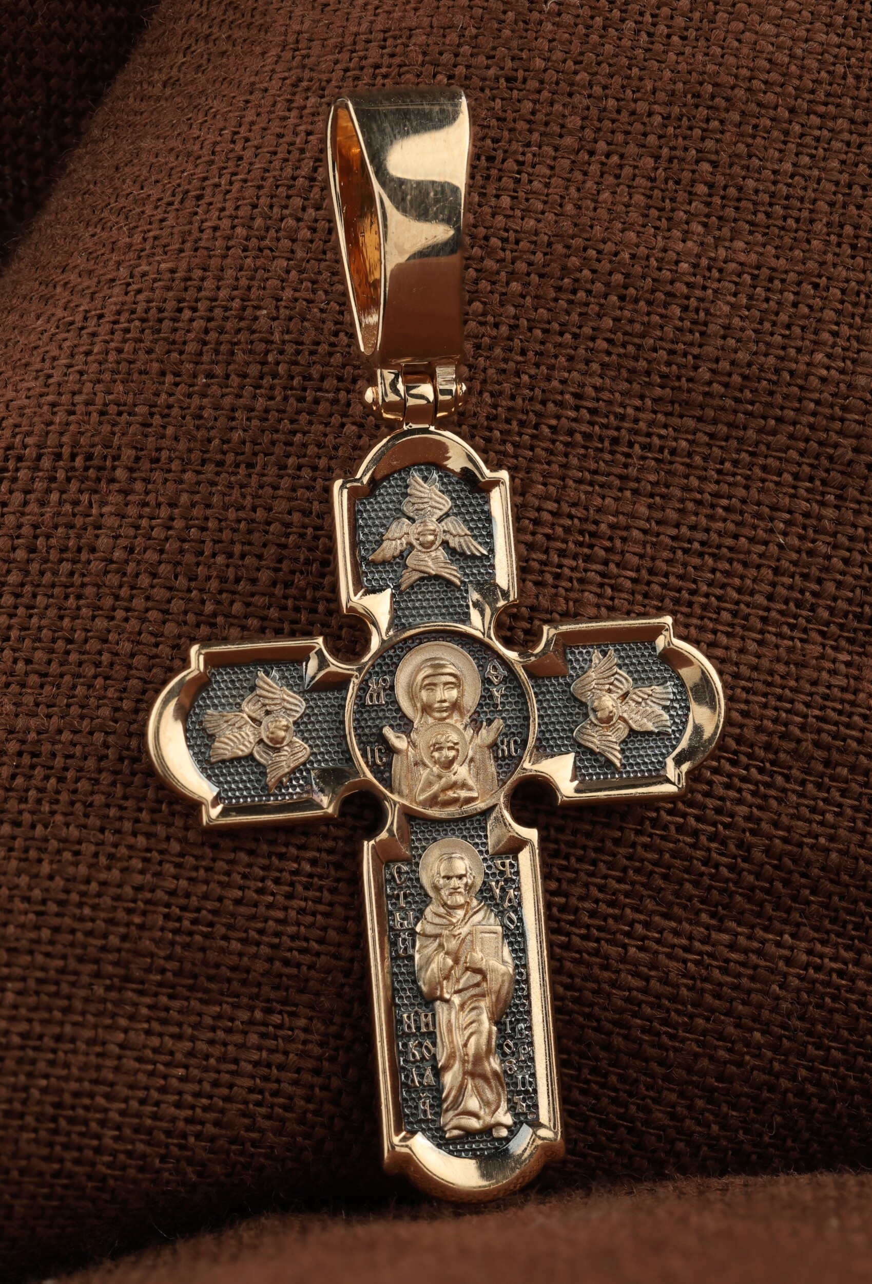 У основания креста в полный рост изображен самый любимый святой Православной Церкви — Николай Чудотворец. Святой почитается как целитель болезней, покровитель путешествующих, особенно по морю, помощник в торговле, учебе, а также в поисках достойного супруга.