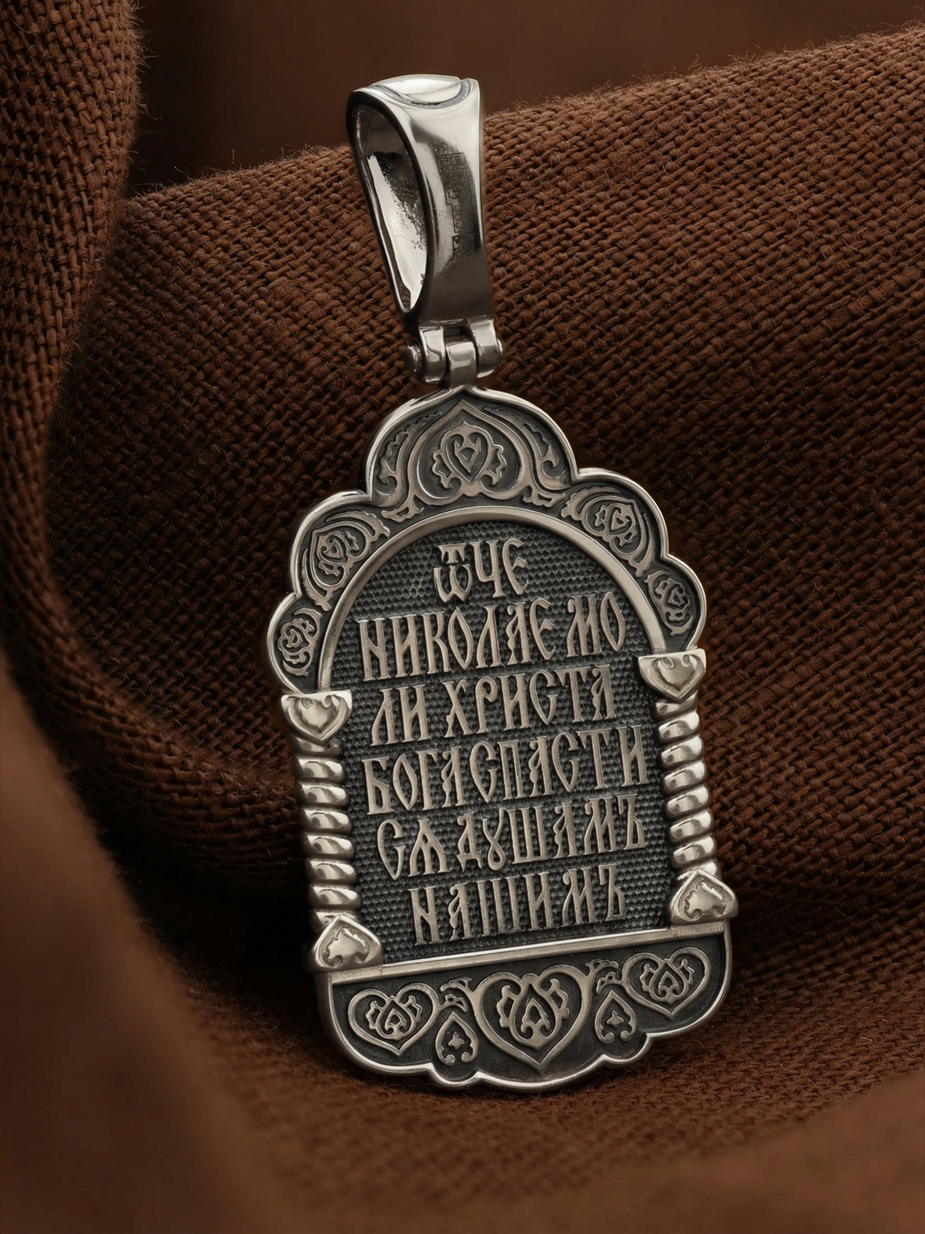 На оборотной стороне образка написаны слова молитвы: «Отче Николае, моли Христа Бога спастися душам нашим».