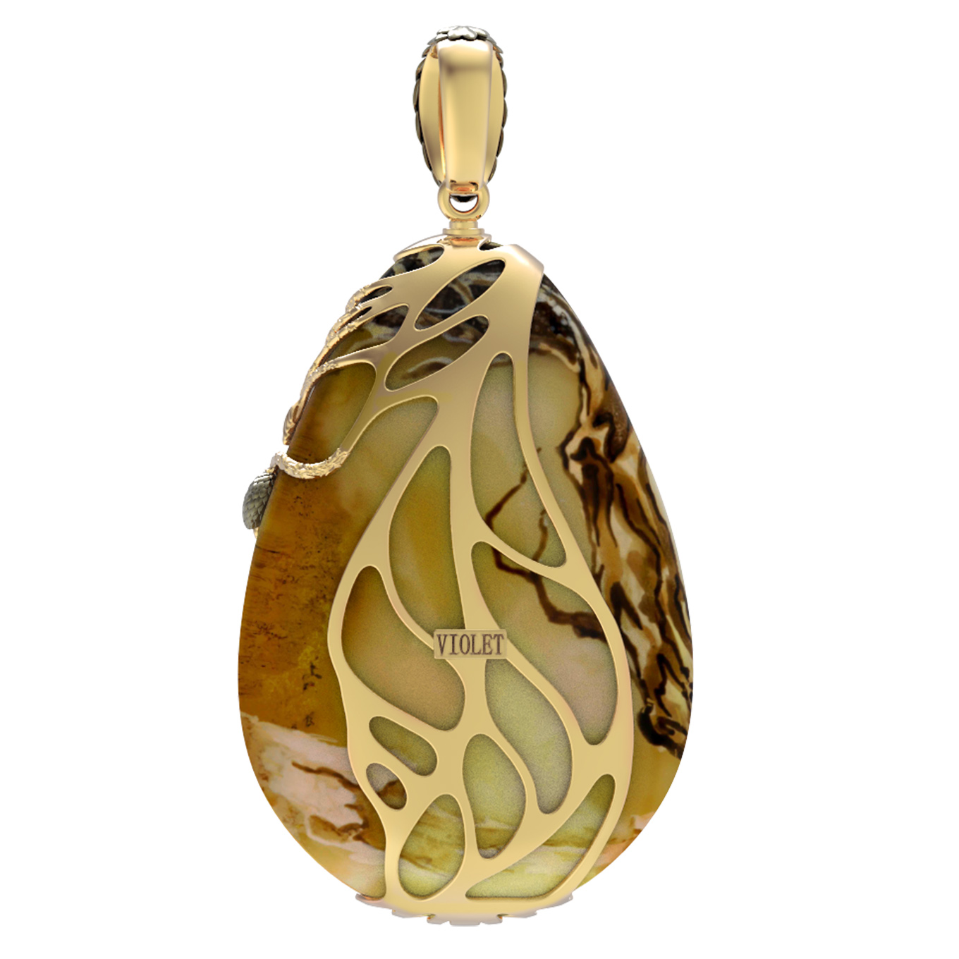 Подвеска из лимонного золота c росписным янтарём