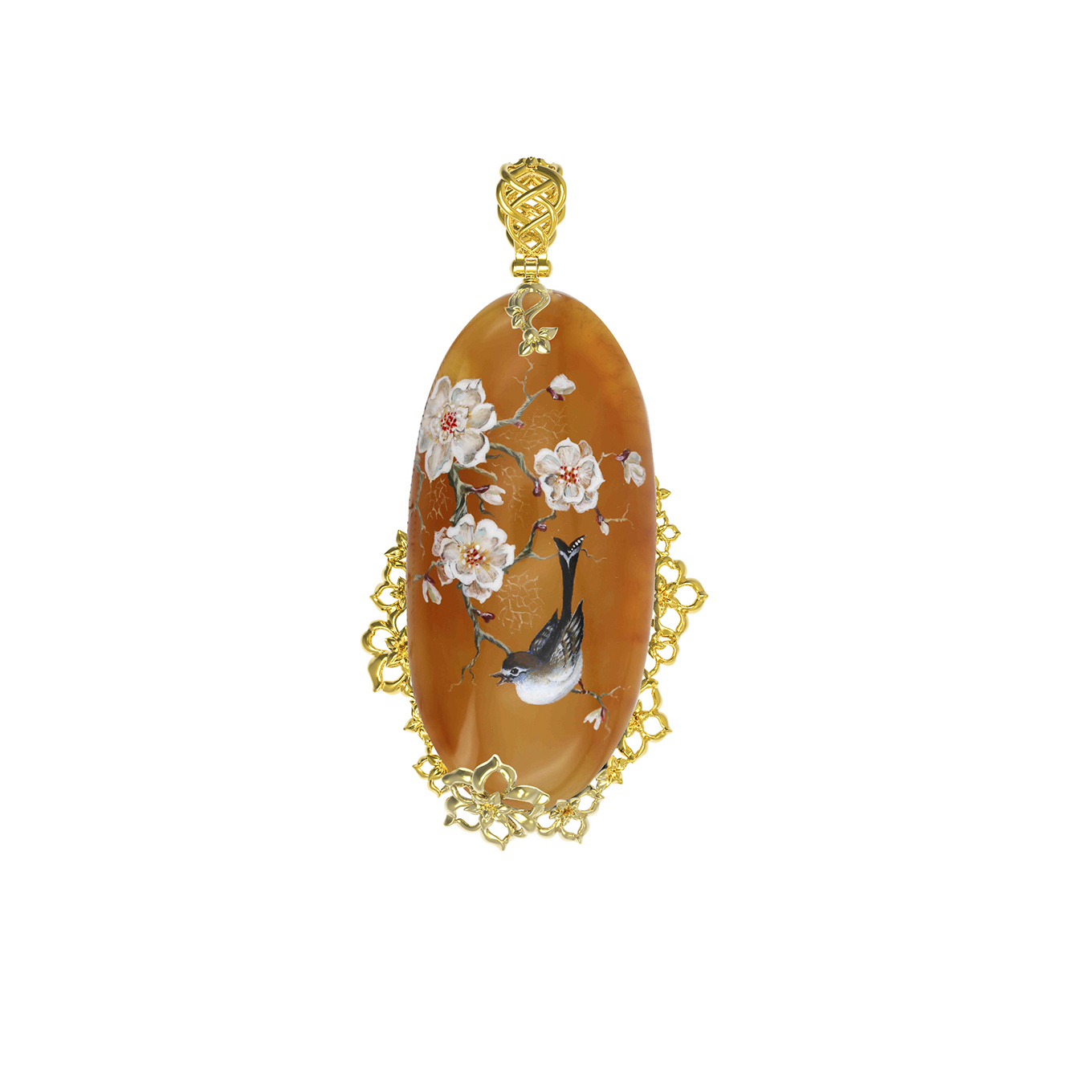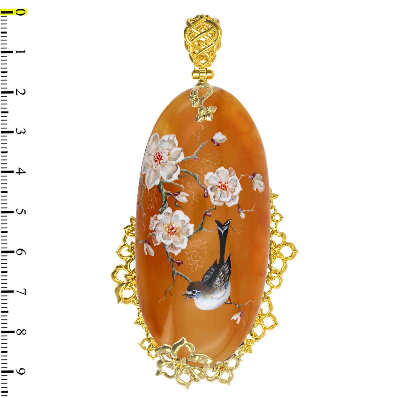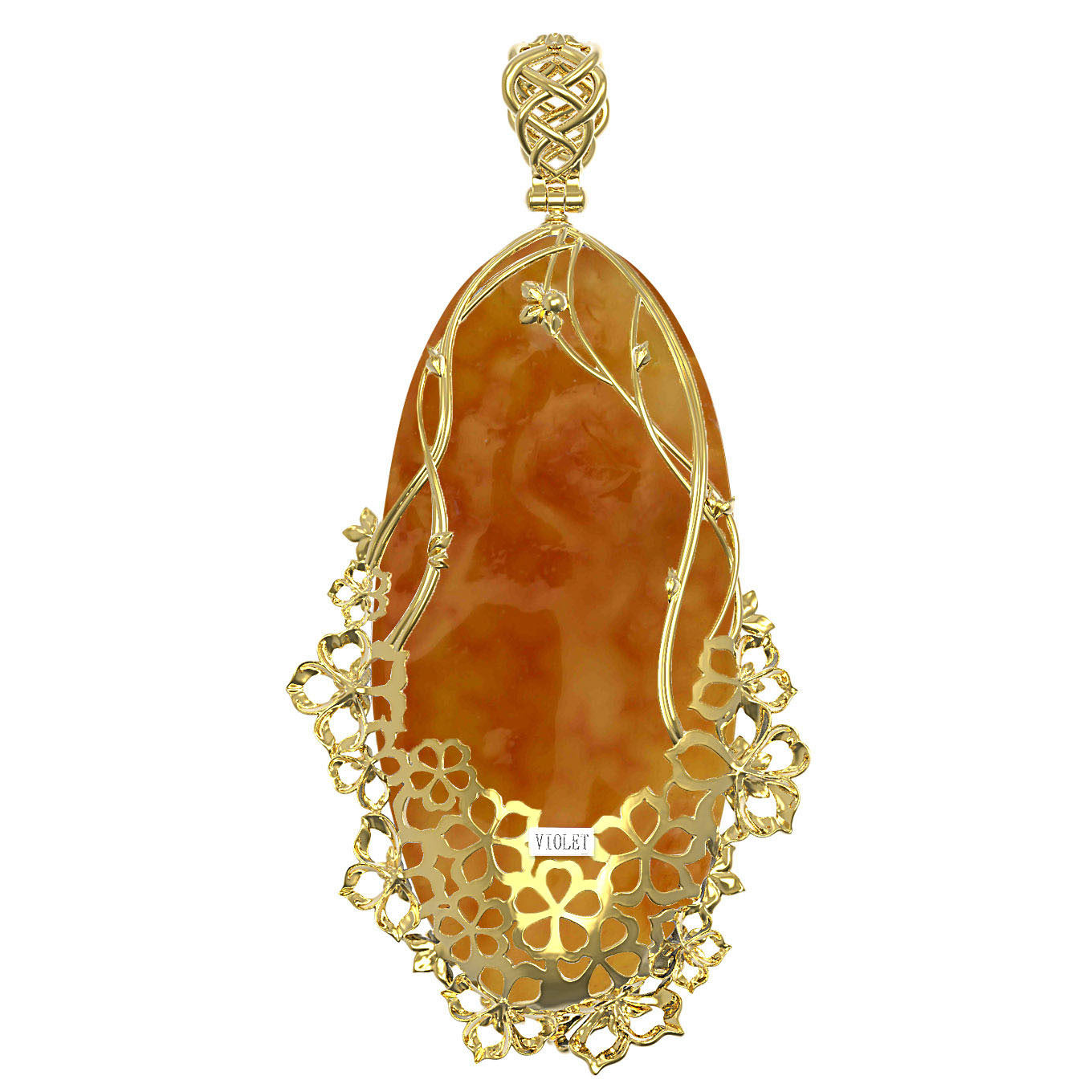 Подвеска из лимонного золота c росписным янтарём