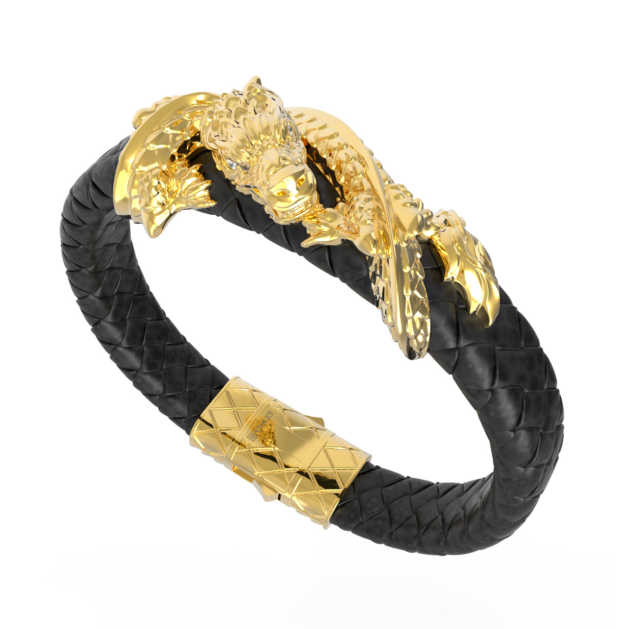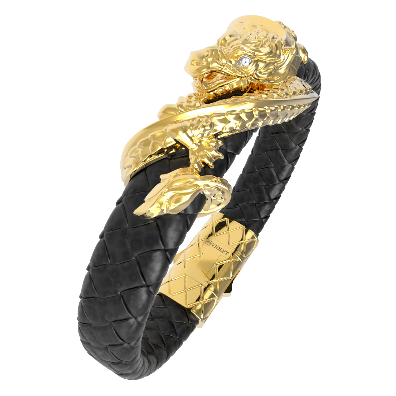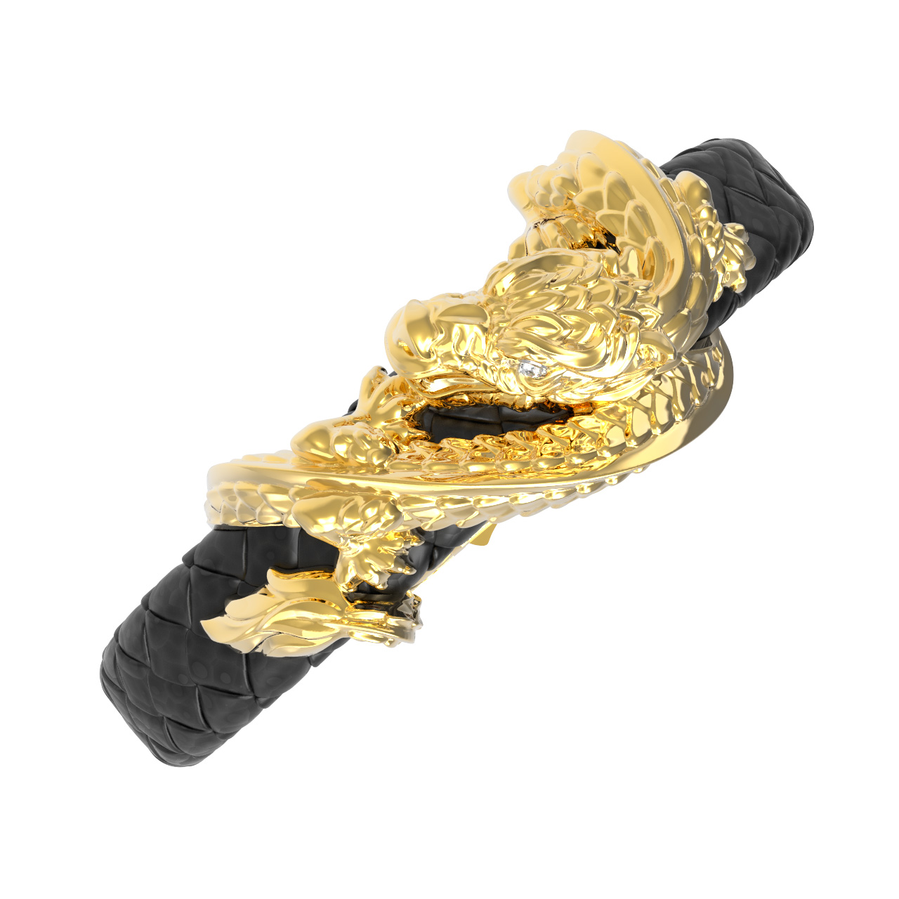 Браслет из лимонного золота c бриллиантами и кожаным шнурком