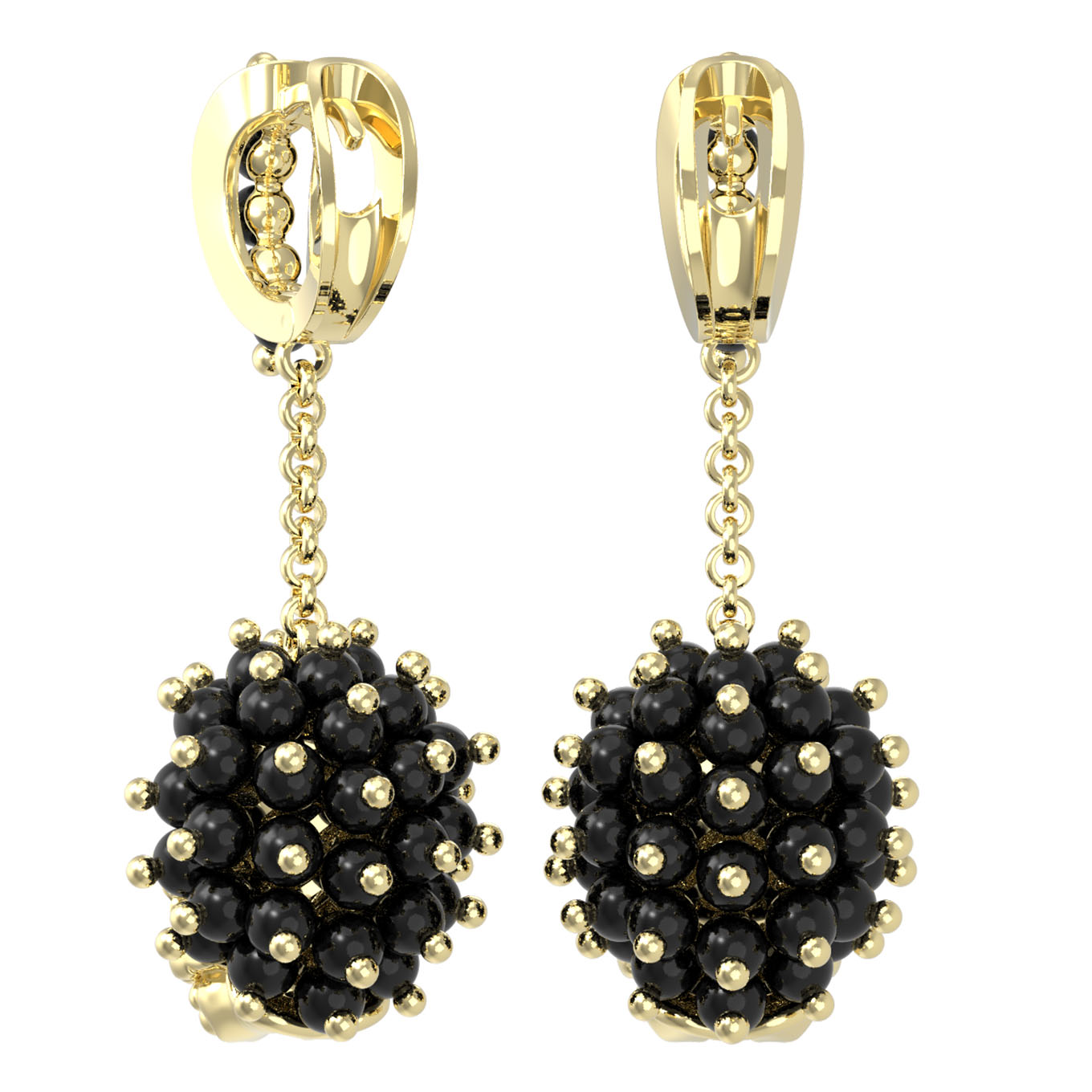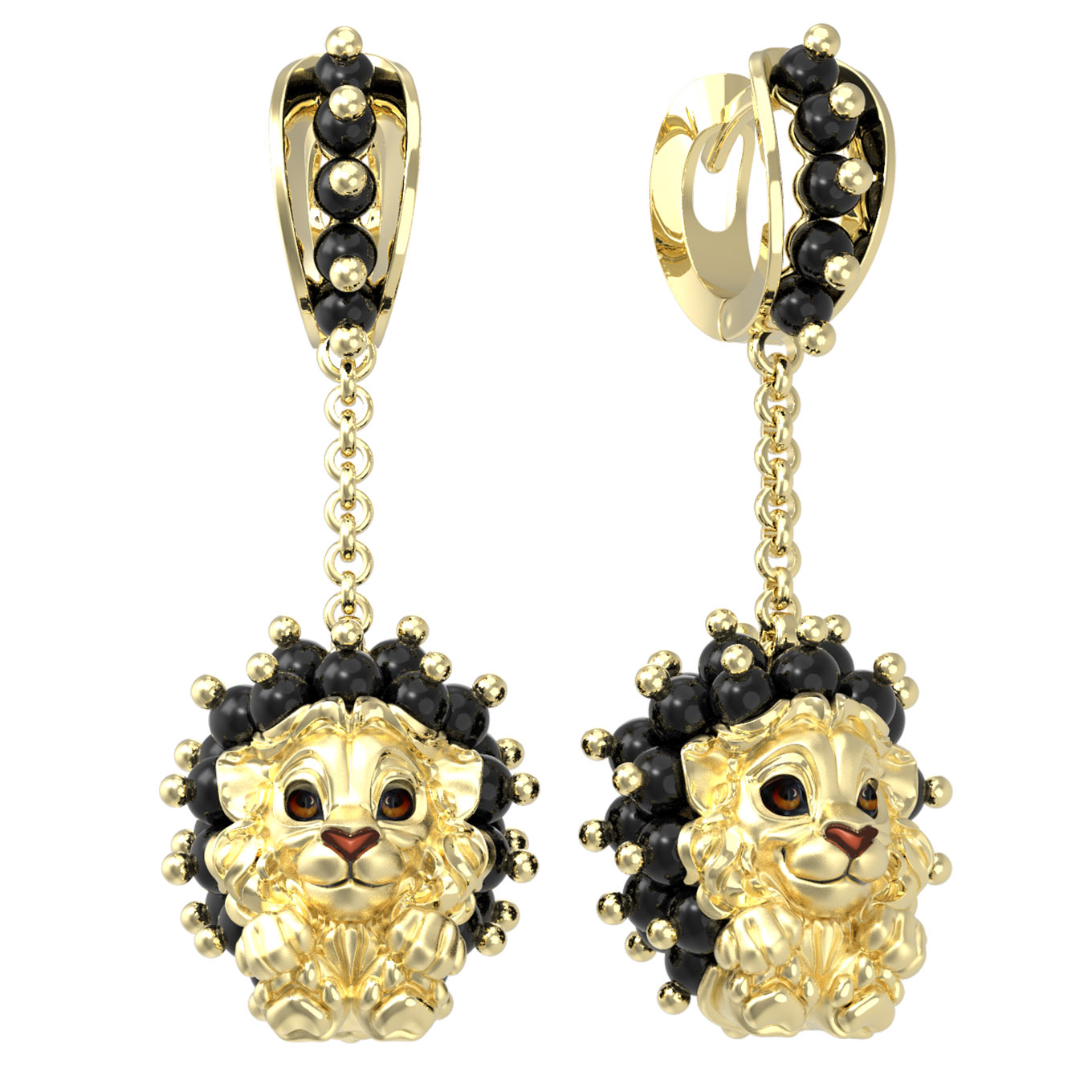 Серьги из лимонного золота c эмалью и ониксом