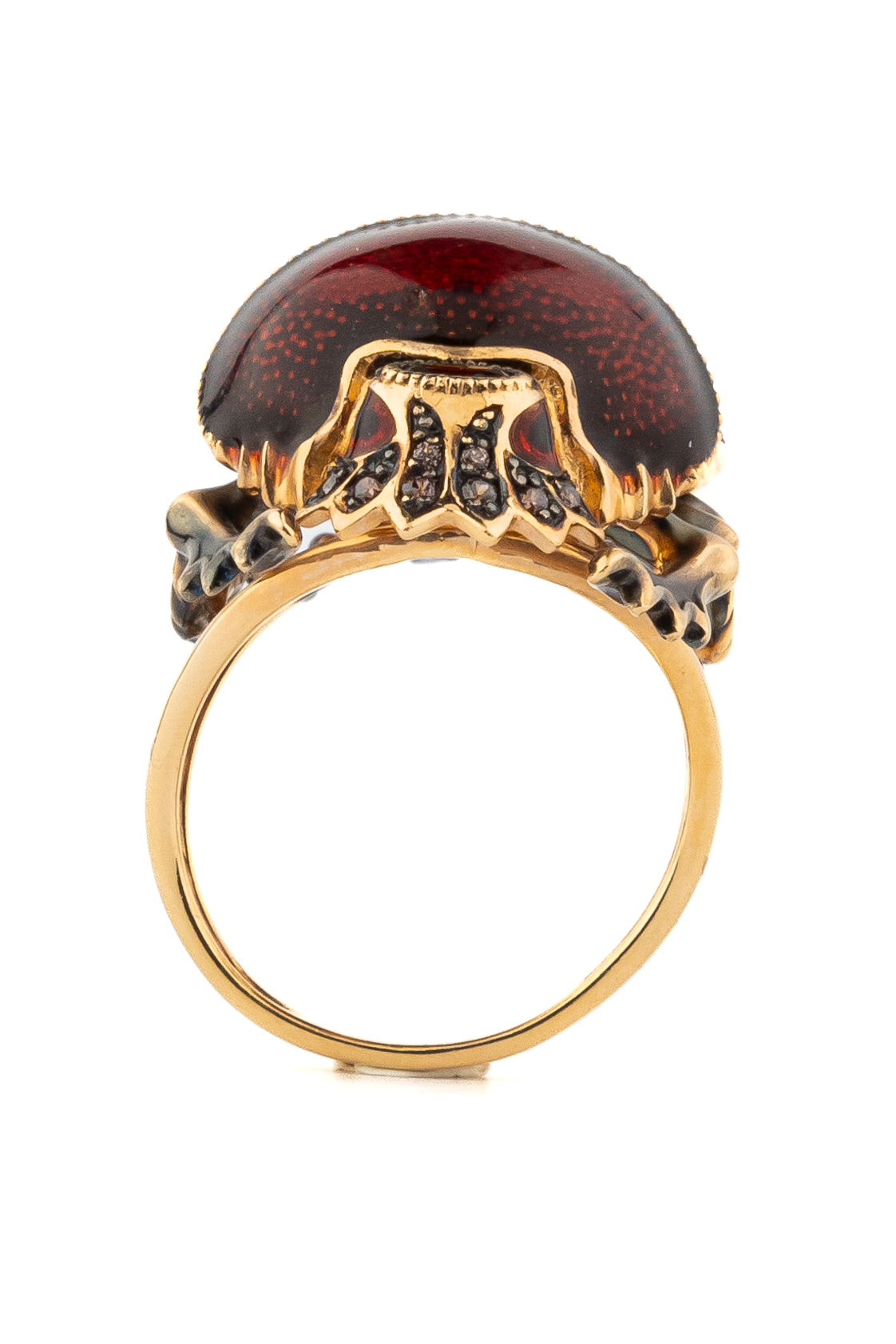 Кольцо из золота c эмалью, фианитом и гранатом