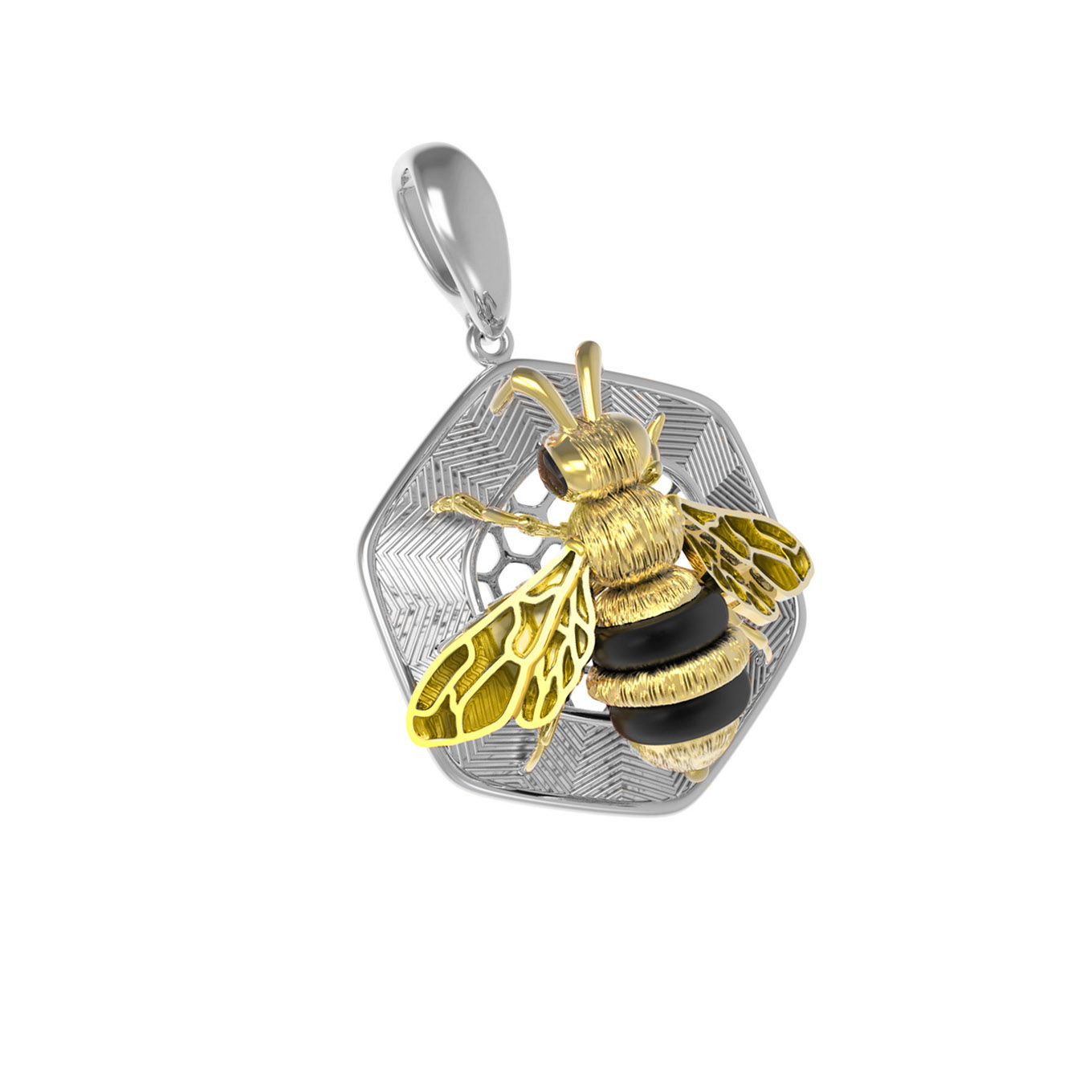 Подвеска из белого золота c эмалью, ониксом и эмалью