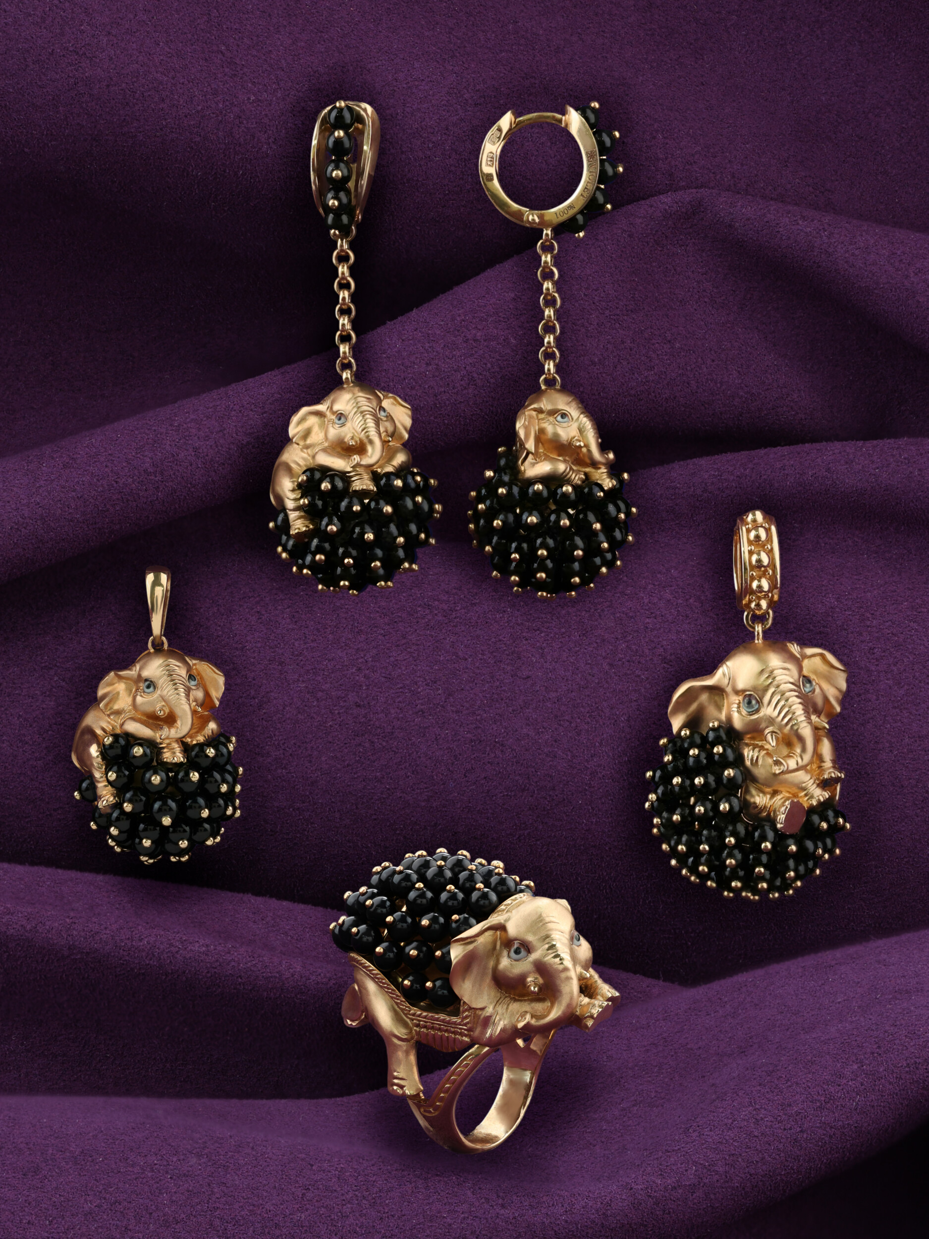 Серьги из золота c эмаль и ониксом