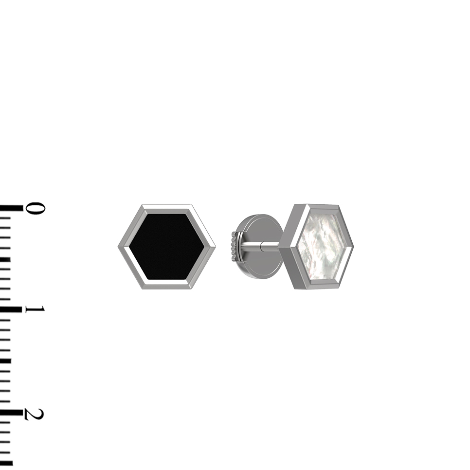 Серьги из белого золота c ониксом и перламутром