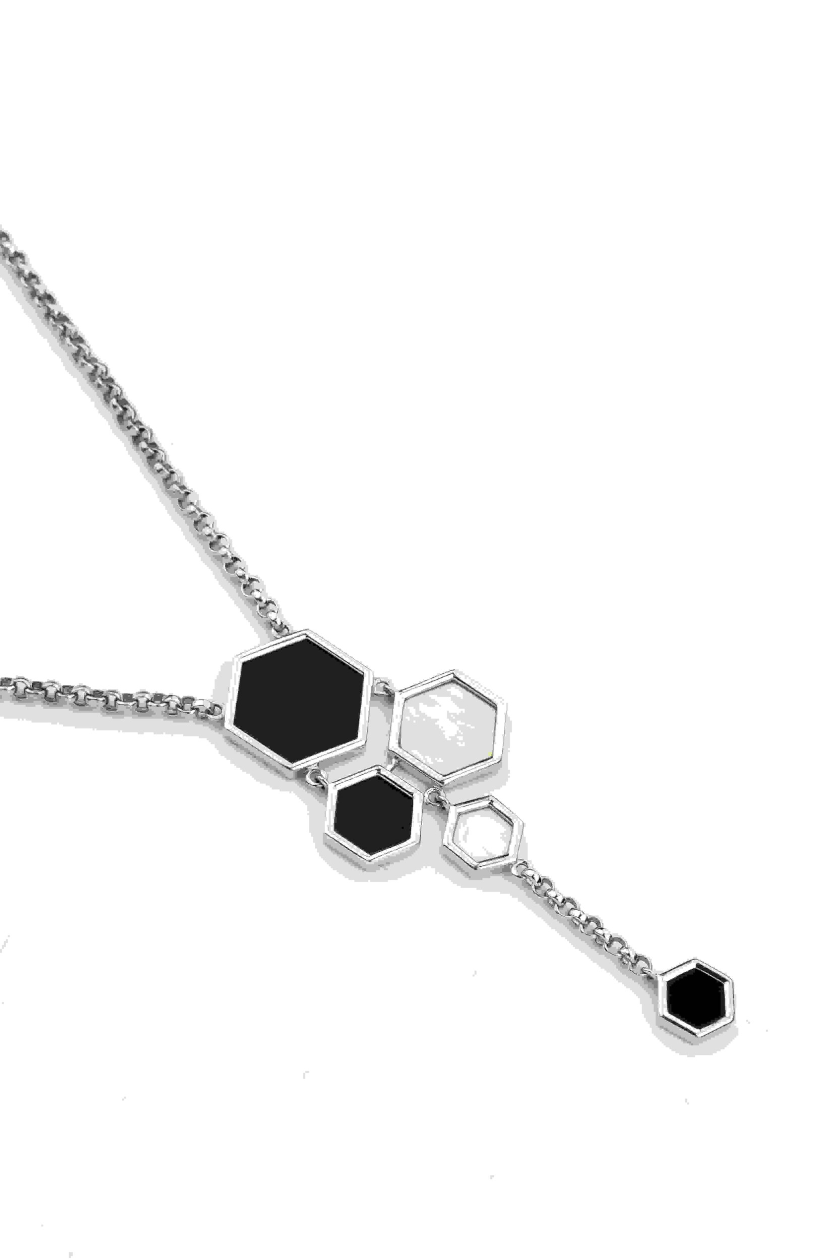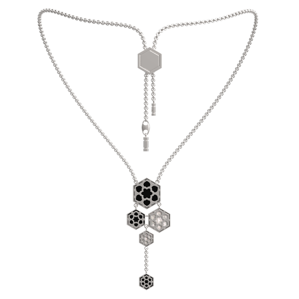 Колье из белого золота c ониксом и перламутром