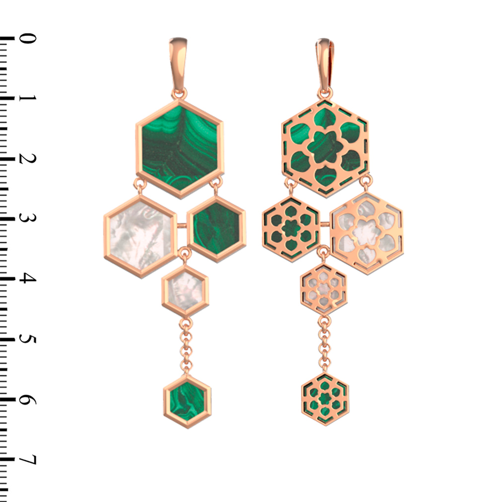 Подвеска из золота c малахитом и перламутром