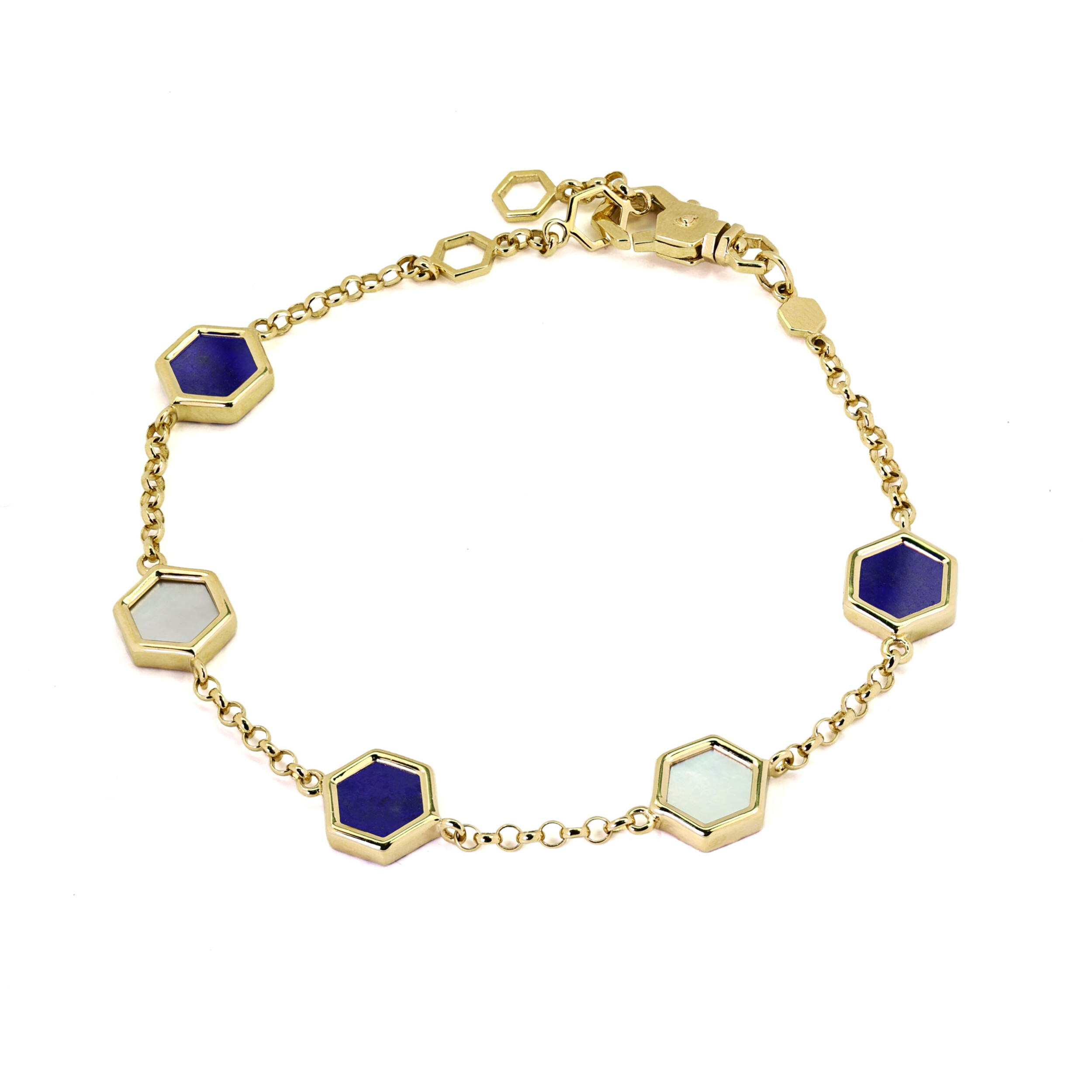 Браслет из лимонного золота c лазуритом и перламутром