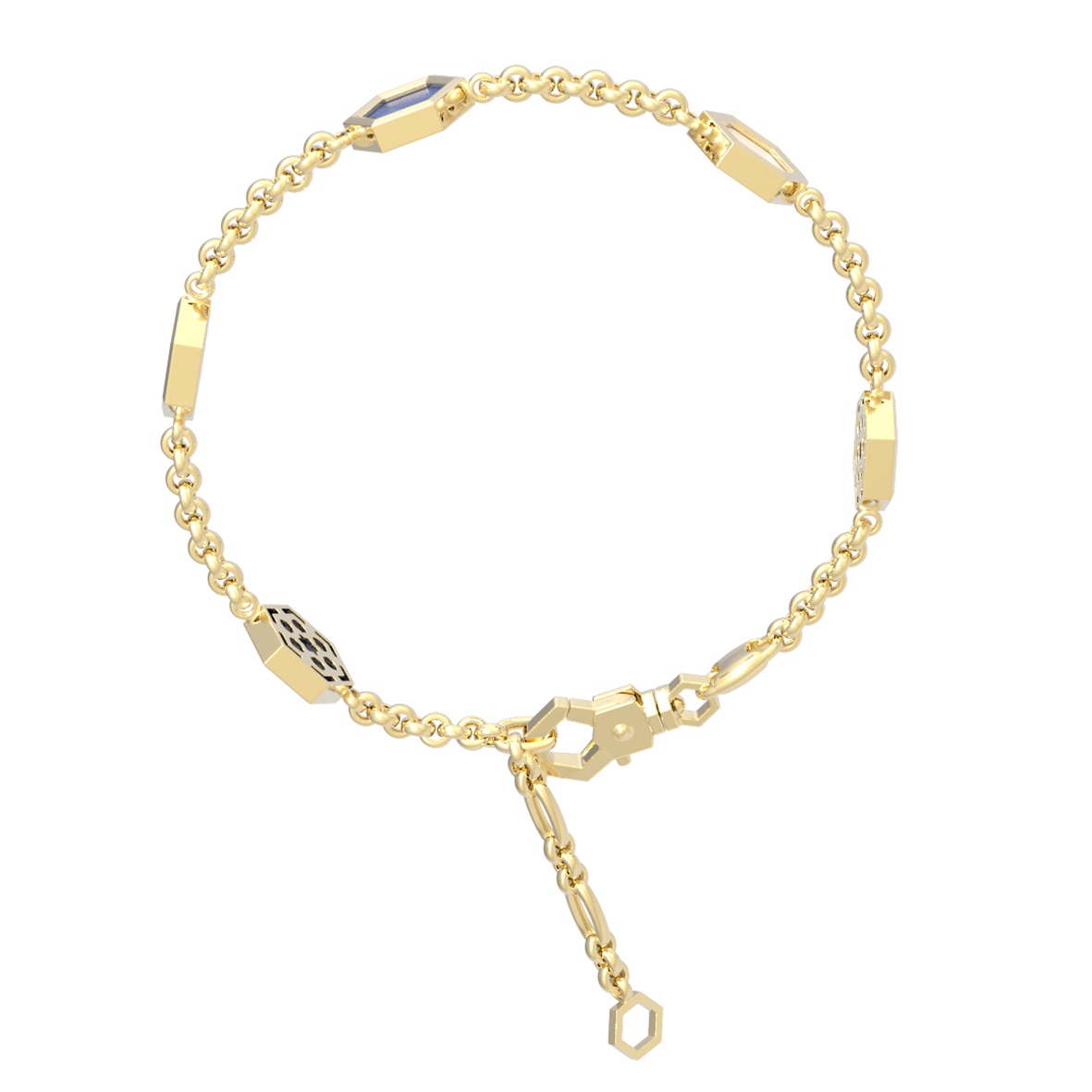 Браслет из лимонного золота c лазуритом и перламутром